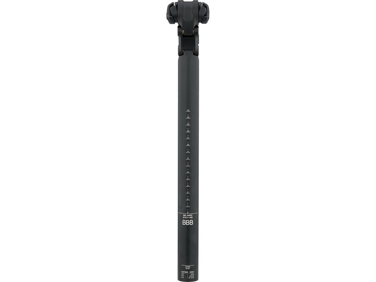 Durchmesser:31,6 mmLänge:400 mmSetback:20 mmHerstellernummer:2973634203Lieferumfang:1 x Sattelstütze BBB ActionPost BSP-421 x Elastomer BBB D50 >65 kg1 x Elastomer BBB D70 65 – 85 kg (montiert)1 x Elastomer BBB D90 85 – 120 kg