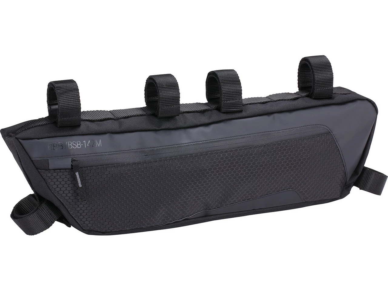 Spezifikationen:Einsatzbereich:All Mountain, Road, GravelAusführung:RahmentascheBefestigung:KlettverschlussMaterial:Polyamid, Polyester, TarpaulinMaße (HxBxT):12 x 40 x 7 cm (3 l), 14 x 44 x 7 x cm (4 l), 16 x 50 x 7 cm (5 l)Volumen:3 Liter, 4 Liter, 5 LiterFeatures:Oberrohr-Rahmentascheeinfache Befestigung mittels fünf verstellbarer Klettverschluss-Schlaufen für Anpassung an verschiedene Rahmenzwei Fächer mit zwei wasserfesten ReißverschlüssenInnenleben in leuchtend blauem Design für bessere Sichtbarkeit des InhaltsHerstellernummern:3 Liter:29730642004 Liter:29730642015 Liter:2973064202Lieferumfang:1 x Satteltasche BBB Middle Mate