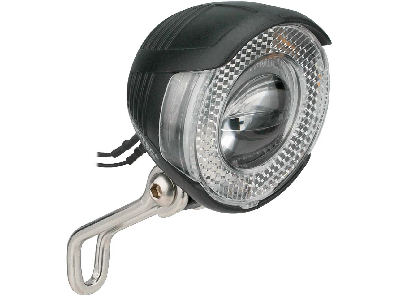 Spezifikationen:Ausführung:Frontlicht (weiß)Montage:Edelstahl LampenhalterLeuchtmittel:1 x LEDLeuchtkraft:25 LuxBetriebsmittel:Nabendynamo, SeitenläuferdynamoTechnische Daten:Material:KunststoffStandlicht:Ja (nicht abschaltbar)Schalter:Ein / AusFreigaben:Zulassung im Straßenverkehr:Ja, für Fahrräder (nach §67 StVZO)Prüfziffer:K ~~ 866Features:mit einer Hochleistungs-LEDmit praktischer Standlichtfunktionoptimale NahfeldausleuchtungSeitenfenster ermöglicht aktive Seitenabstrahlungcomputerdesignte LinsenwölbungScheinwerferdurchmesser von 62 mmRückstrahler-Ring bietet passive Sicherheithomogene und breite Fahrbahnausleuchtungblanker Edelstahlhaltervier Anschlüsse mit beiliegendem Doppelkabelmit Schalter für Naben-Dynamozugelassen im Bereich der StVOTechnologien:Standlicht