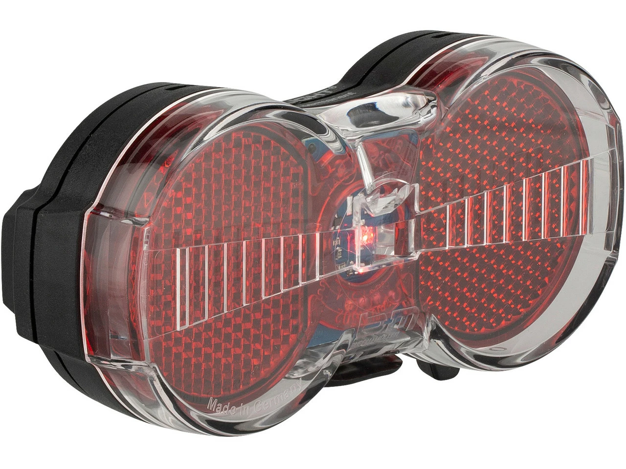 LineTec ist ein patentiertes Lichtsystem mit spezieller Linsenwirkung. Das punktuelle Licht von Hochleistungs-LEDs wird zu einem breiten Leuchtstreifen aufgefächert, der gleichmäßig leuchtet. Ein Rücklicht mit LineTec-Lichtband sendet ein „räumliches“ Licht aus. Deshalb können andere Verkehrsteilnehmer den Abstand viel besser und schneller einschätzen.
