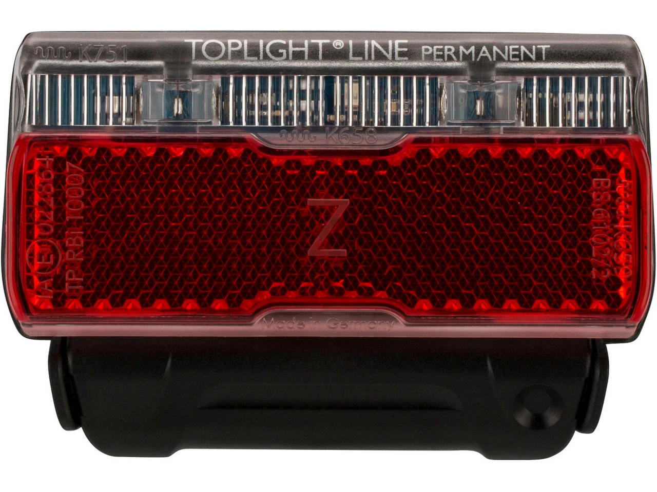 Spezifikationen:Ausführung:Rücklicht (rot)Montage:Schraubenabstand 50 / 80 mmLeuchtmittel:2 x LEDBetriebsmittel:Batterie, 1 x MignonTechnische Daten:Material:KunststoffFreigaben:Zulassung im Straßenverkehr:Ja, für Fahrräder (nach §67 StVZO)Prüfziffer:K ~~658Features:mit zwei Hochleistungs-LED90 mm LineTec®-Lichtstreifen (Klarglas, leuchtet rot)superhellbis 320° Sichtbarkeitmit Batterie-IndikatorBatteriefach lässt sich mit Spezialschraube diebstahlgeschützt verschließensuperschlankes Designintegrierter Z-Großflächenrückstrahlerwahlweise mit 50 oder 80 mm BolzenabstandTechnologie:Standlicht
