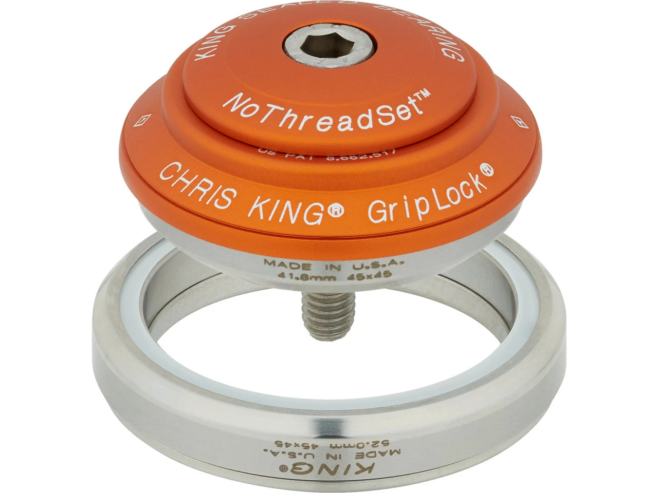 Verwendung:Für 1 1/8″ Steuerrohre oben und 1,5″ unten in Kombination mit 1 1/8″ – 1,5″ tapered Gabeln konzipiert.Spezifikationen:Einsatzbereich:Road, Gravel, Cyclocross, Cross Country, All Mountain, Enduro, DownhillBauart:integriert (IS)Außendurchmesser oben:42 mmInnendurchmesser oben:28,6 mmAußendurchmesser unten:52 mmInnendurchmesser unten:40 mmSteuerrohr:1 1/8″ – 1,5″Gabelschaft:1 1/8″ – 1,5″Technische Daten:Material:AluminiumLagerung:mehrfach gedichtete Industrielager aus EdelstahlDeckel:Aluminium Ahead-KappeFeatures:integrierter Ahead-Steuersatz mit nur 9 mm BauhöheCNC-gefrästes Aluminiummehrfach gedichtete Chris-King-Präzisionslagerentwickelt und hergestellt in Portland, Oregon (USA)Herstellernummern:black:CAB1gold:CAY1matte jet:CAB2matte mango:CAM2matte slate:CAH2matte turquoise:CAT2navy:CAN1red:CAR1silver:CAS1two tone-black-gold:CABYLieferumfang:1 x Steuersatz Chris King DropSet 2 IS42/28,6 – IS52/40 GripLock1 x Ahead-Kralle Chris King1 x Ahead-Kappe Chris King