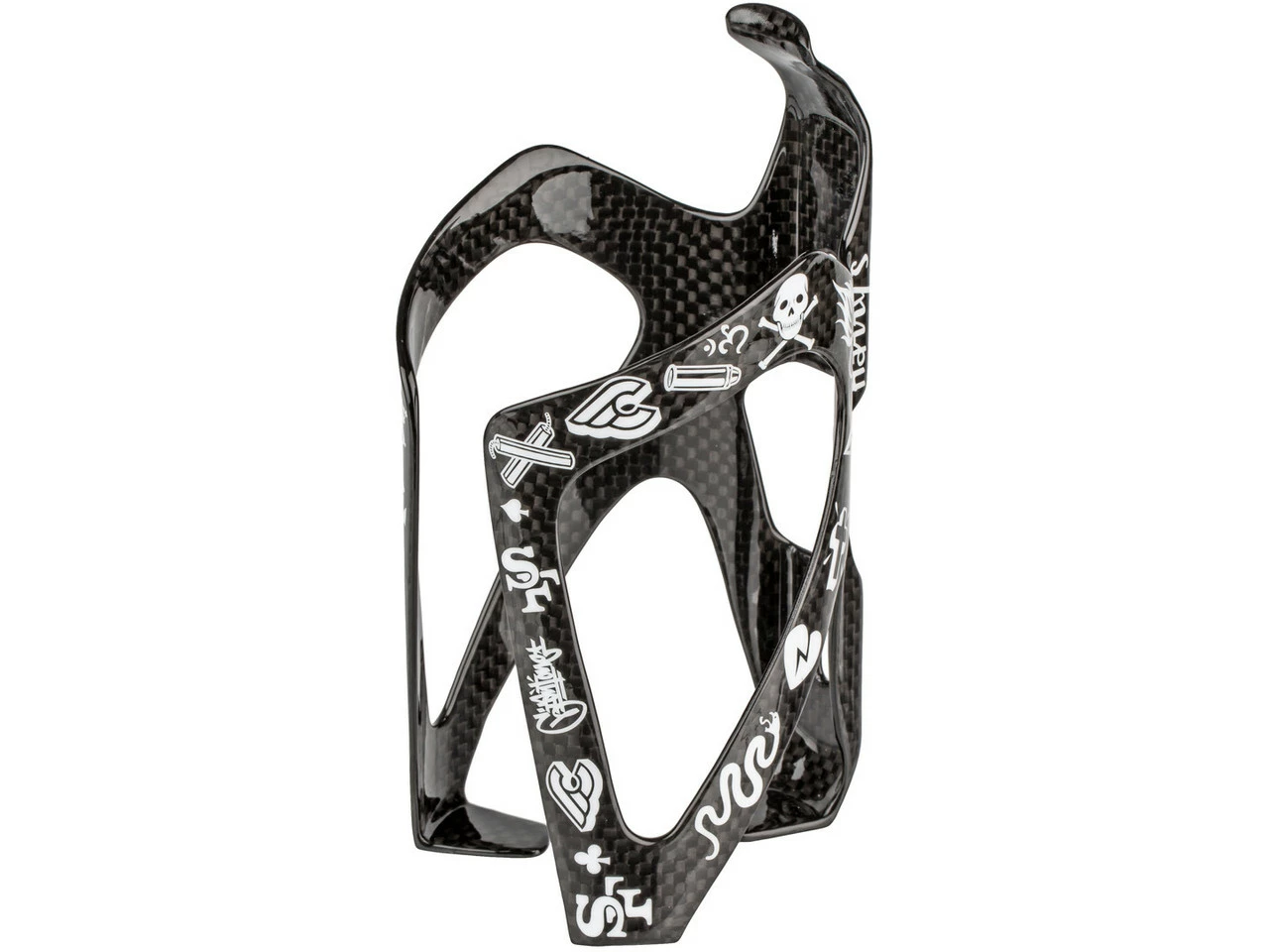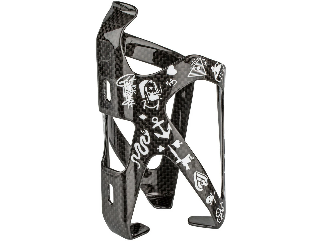 Cinelli Flaschenhalter mit wunderbaren Mike Giant Grafiken auf rohem Carbon. Das exklusive Design ist eine Neuinterpretation von Vintage Tattoo Symbolen.