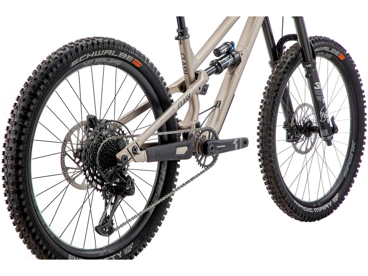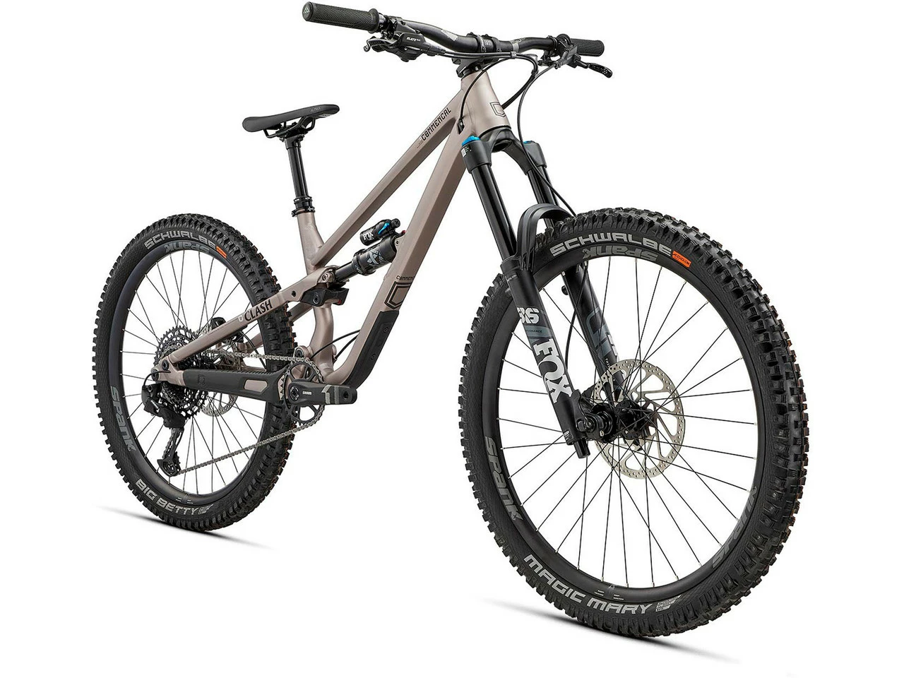 Spezifikationen:Einsatzbereich:Kids, Enduro, DownhillLaufradgröße:Scaled SizingFederweg vorne:170 mmFederweg hinten:160 mmMaterial Hauptrahmen:Aluminium (6066)Material Hinterbau:Aluminium (6066)Komponenten:Rahmen:COMMENCAL 2022 Clash XS, doppelt konifiziert, 12 x 148 mm (Boost)Gabel:Fox Racing Shox 36 Performance, FIT GRIP, 3 Positionen, Rebound, 37 mm Offset, 0 Token, 15 x 110 mm (Boost)Vorbau:Ride Alpha Freeride 40, 31,8 mmLenker:Ride Alpha R20, 31,8 mm Durchmesser, 740 mm Breite, 20 mm Rise, Aluminium (6061)Griffe:Ride Alpha DH, ultra-soft Gummimischung, single clamp, schwarzDämpfer:Fox Racing Shox Float X Performance, 210 x 55 mm, Rebound, 2-Positionen-EinstellungRemote System:ohneSteuersatz:Acros ZS44/ZS56Sattelstütze:Kind Shock Rage-I, 31,6 mm Durchmesser, mit SouthPaw Remote, 100 mm HubSattel:Fizik Alpaca Gravita X5, 130 mm Breite, S-Alloy-StrebenKurbel:SRAM X1 1000 Eagle, 155,0 mm, DUB, Boost, mit SRAM X1 1000 Eagle Kettenblatt, 32 Zähne, Narrow-WidePedale:ohneBremsen:TRP Slate Evo, 4 Kolben, kompatibel mit I-Spec EV, mit TRP Bremsscheiben, 203 mm, 6-LochSchalthebel:SRAM SX Eagle, 12-fachSchaltwerk:SRAM SX Eagle, 12-fachKassette:SRAM PG-1210, 11-50 ZähneKette:SRAM NX Eagle, 12-fachFelgen:Spank Spike Race 33, 32 Loch, 28 mm Maulweite, tubeless readySpeichen:Sapim D-Light, J-Bend, konifiziert, 2,0 – 1,6 – 2,0 mm, Edelstahl, Pro Lock, schwarzVorderradnabe:Formula DC-711, 28 Loch, gedichtete LagerHinterradnabe:Formula DC-348A, 28 Loch, gedichtete LagerReifen:Schwalbe Big Betty, Super Trail, ADDIX Soft, 27,5 x 2,4″ (VR) / 26 x 2,4″ (HR)Freigaben:Bremsscheibengröße max.:220 mm (hinten)Reifengröße max.:26 x 2,5″ (hinten)Kettenblattanzahl:1-fachGabeleinbaulänge max.:562 mmFeatures:vollgefedertes Mountainbike für Jugendliche27,5-Zoll-Vorderrad für starke Bergauf-Qualität und Vertrauen26-Zoll-Hinterrad für Agilität und Gripleichter Rahmengelagerter Dämpfer für sensibles Ansprechverhalteneher flache Lenk- und Sitzwinkel für Fahrstabilitätmehr Bewegungsfreiheit durch eher niedriges Sitzrohreinfache Wartung und cleaner Look durch interne LeitungsführungGeometrie:(basierend auf einer Gabeleinbaulänge von 552 mm)