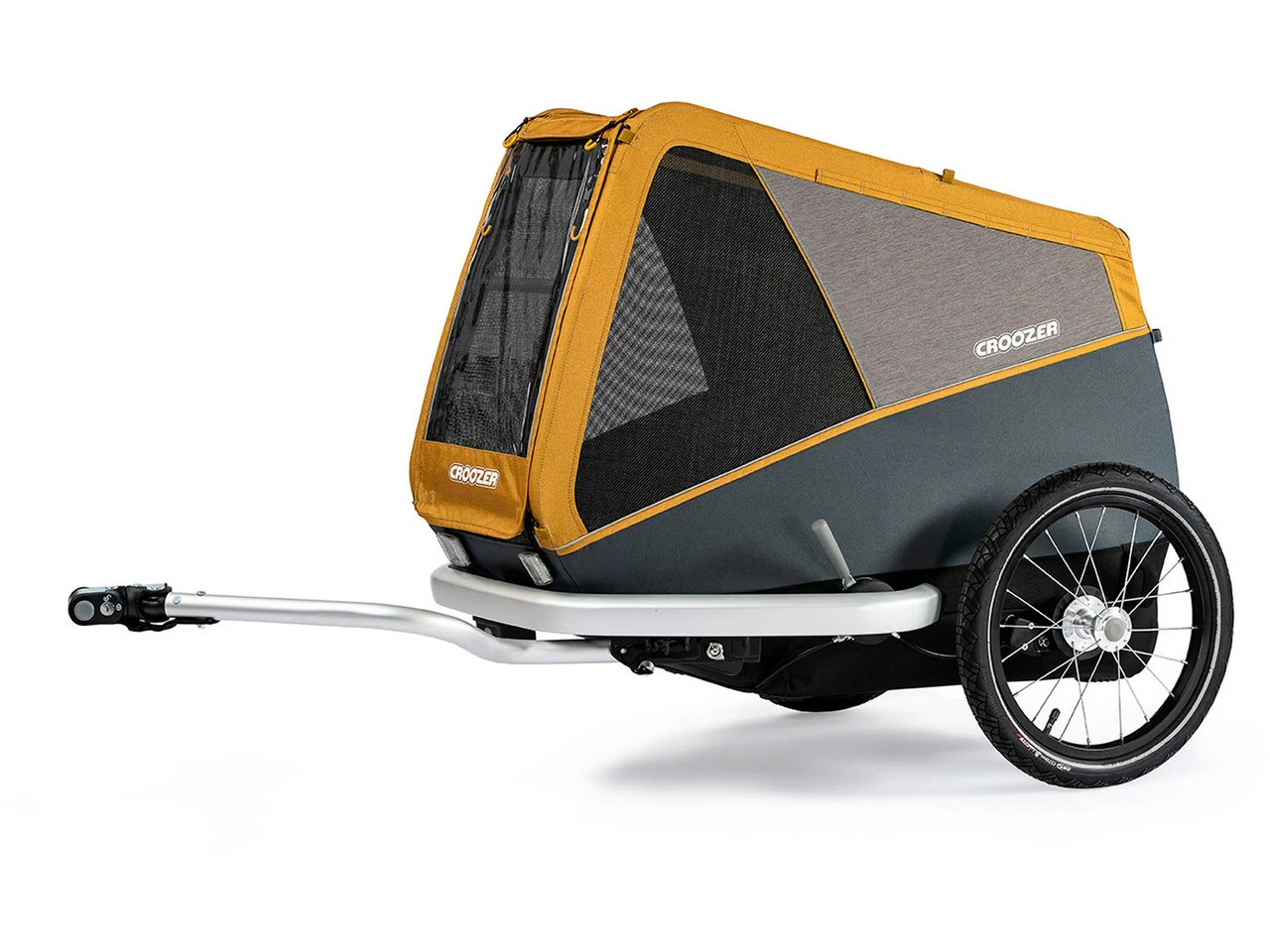 Der Croozer Dog Peppa Hundeanhänger für mittelgroße Hunde bis 35 kg punktet mit einem extra tiefen Einstieg, einer sehr guten Frischluftzufuhr und kompakten Faltmaßen. Außerdem verfügt er über einen geräumigen Innenraum, eine aufrollbare Sichtblende am Heck, Spritzschutz, Stoßfänger sowie Feststellbremsen. Die Deichsel des Anhängers ist abschließbar.