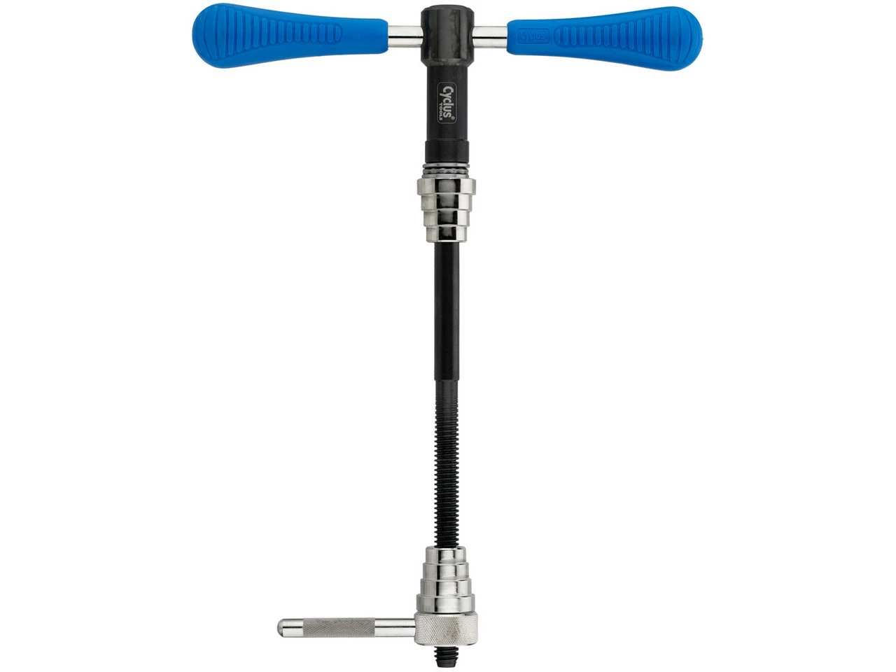 Features:Drehspindel mit T-GriffGewindestange 360 mm mit TrapezgewindePressklobenpaar für Steuersatzlagerschalemit Gewindemuffe und Drucklagerdient zum gleichzeitigen Einpressen der oberen und unteren Steuersatzschale in das Steuerrohr des Rahmensgeeignet für 1″ und 1 1/8″Herstellernummer:720009