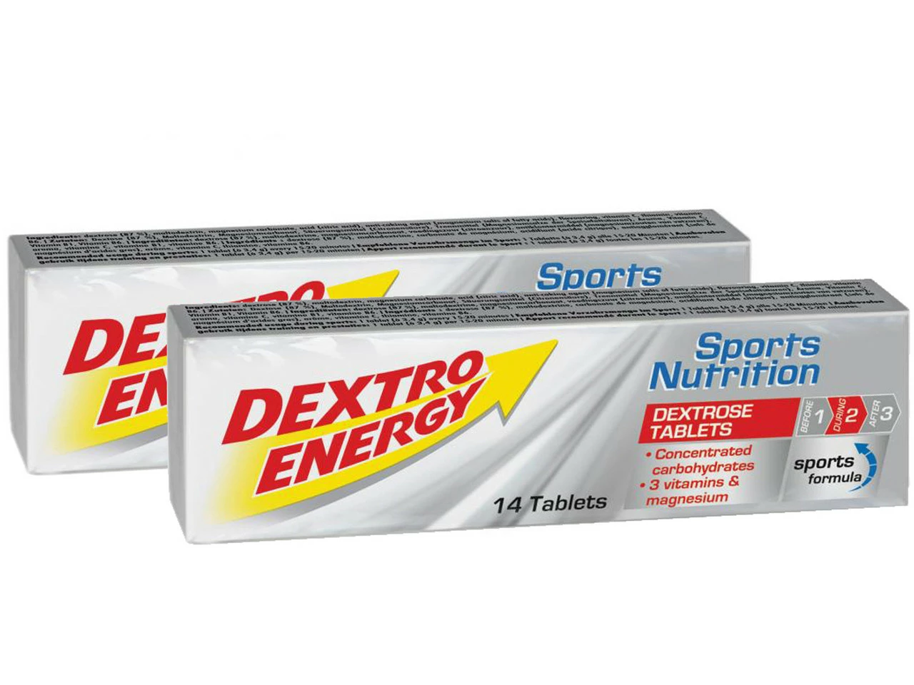 Lieferumfang:1 x Doppelpack Tablets Dextro Energy Dextrose, 2 x 14 Tablets, Nettofüllmenge 94 g