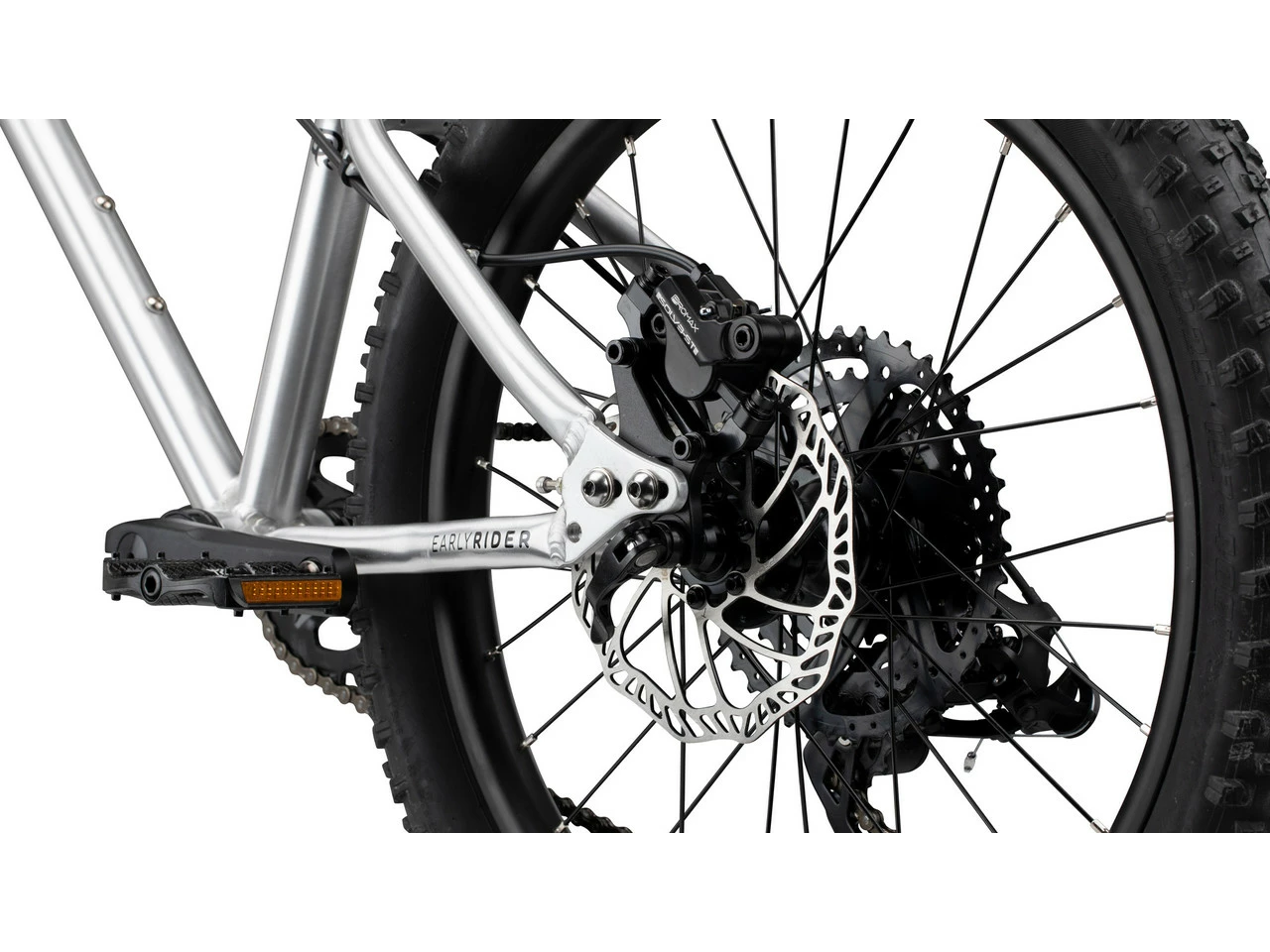 Das EARLY RIDER Seeker Kinderfahrrad in 20 Zoll ist ein leichtes und robustes, leistungsstarkes Bike mit Gangschaltung für abenteuerlustige Kids, die sich schon an kleineren Tricks auf leichten Trails oder an Bordsteinkanten versuchen. Die wendige Geometrie ist hierfür wie geschaffen. Die Gangschaltung von Box ermöglicht mit 8 Gängen effizientes Pedalieren bei unterschiedlichen Bedingungen von Untergrund und Gelände. Die hydraulischen Scheibenbremsen sind absolut kindertauglich und lassen sich unter geringem Kraftaufwand einwandfrei bedienen. Die Kids haben also jederzeit volle Kontrolle über das Bike.