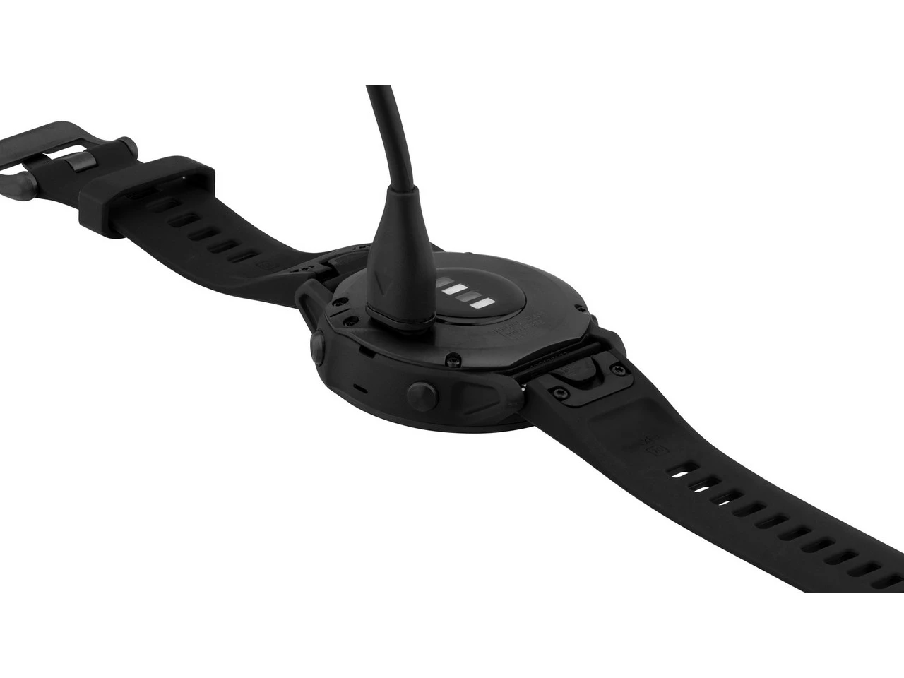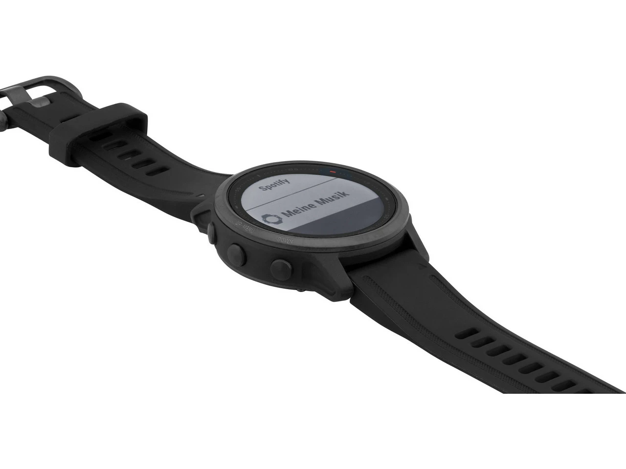 Spezifikationen:Einsatzbereich:Radfahren, Laufen, Schwimmen, Triathlon, Golf, OutdoorKarten:JaHerzfrequenz:Ja, am Handgelenk und in Verbindung mit separatem Brustgurt Run HRM-RUN ANT+Geschwindigkeits-/Trittfrequenzsensor:Ja, in Verbindung mit Geschwindigkeits- und Trittfrequenz-Sensor Set 2Beschleunigungsmesser:JaTechnische Daten:Geräteabmessung:42 x 42 x 13,8 mmAnzeigegröße:30,40 mm DurchmesserAnzeigeauflösung (B x H):240 x 240 PixelAnzeigetyp:transflektives MIP-DisplayFarbdisplay:JaTouchscreen:NeinStromversorgung:Lithium-Ionen-AkkuBetriebsdauer/Akkuladung:bis zu 6 Stunden im GPS und Musik-Modus; bis zu 25 Stunden im GPS-Modus; bis zu 50 Stunden im maximalen GPS-Akku-Modus; bis zu 9 Tage im Smartwatch-Modus; bis zu 20 Tage im Expeditions-GPS-Modus; bis zu 34 Tage im EnergiesparmodusWasserdicht:Ja (10 ATM)Datenübertragung:Bluetooth, ANT+, Wi-FiMaterial Uhrglas:Corning® Gorilla® Glass 3Material Lünette:EdelstahlMaterial Gehäuse:faserverstärktes Polymer mit Metallgehäuse hintenMaterial Armband:SilikonArmband:20 mm breit, für Handgelenkumfänge 108 – 182 mmKarten und Speicher:Basiskarte:JaKarten hinzufügbar:JaTrack-Navigation:JaRouten:JaIntegrierter Speicher:32 GBKompatibilität:Zubehör: