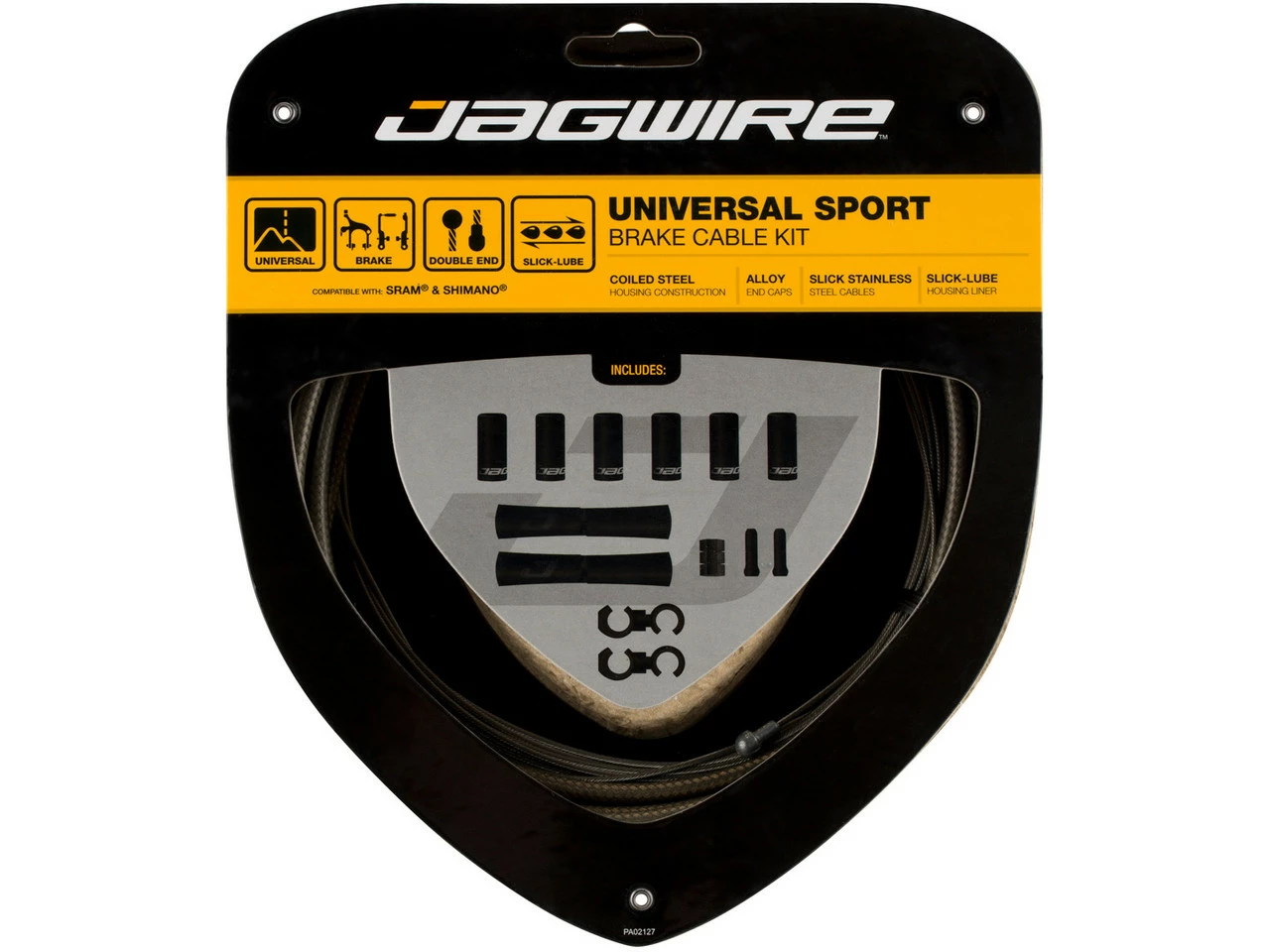Außenhülle:CGX-SL Braided (geflochten)Herstellernummer:UCK426Lieferumfang:Universal Sport Bremszugset Jagwire, bestehend aus: