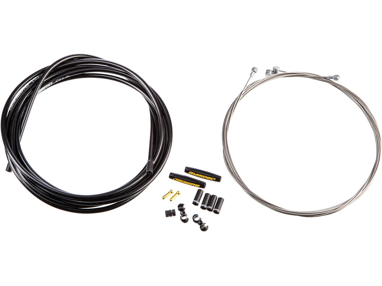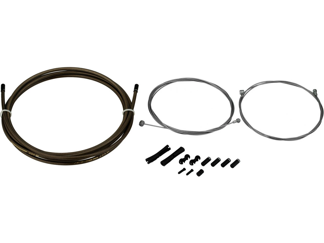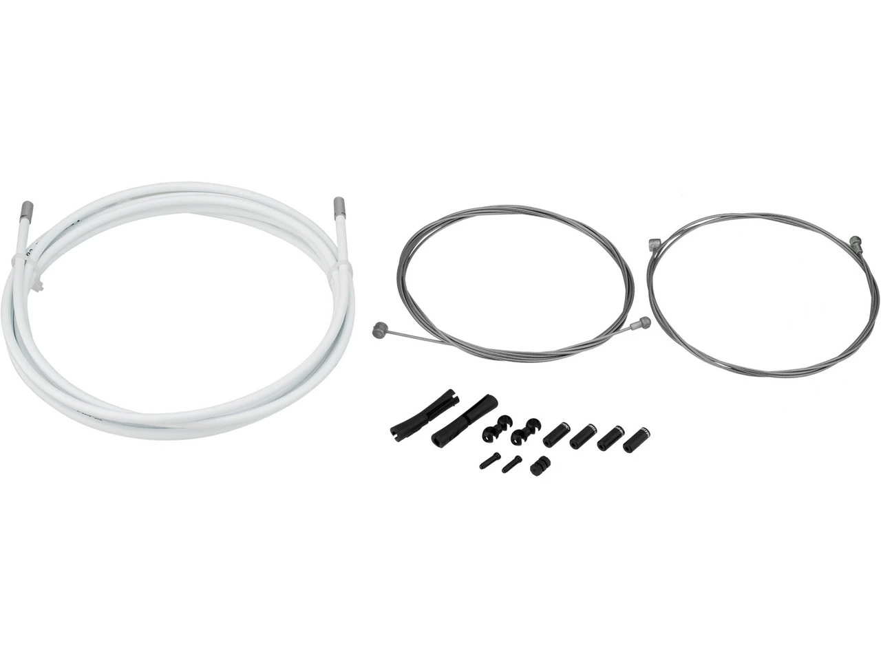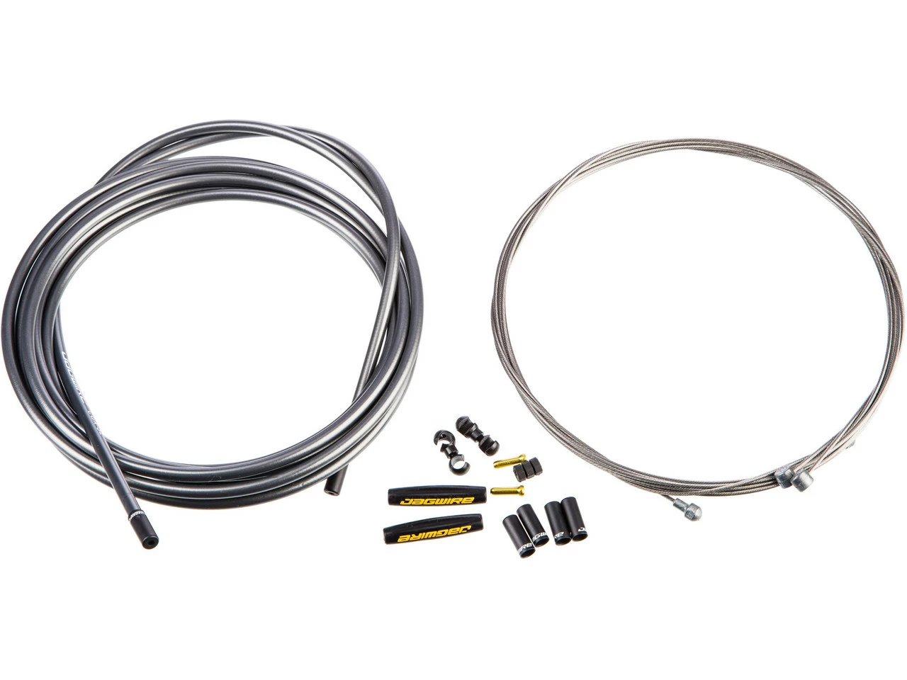 1 x Bremszug Jagwire Edelstahl Sport 1350 mm (VR)1 x Bremszug Jagwire Edelstahl Sport 2350 mm (HR)1 x Bremszugaußenhülle Jagwire CGX-SL oder CGX-SL Braided mit Liner Jagwire Slick-Lube6 x Endkappe Jagwire offen3 x Cable Donut Jagwire2 x Rahmenschützer Jagwire Tube Tops2 x Endtülle2 x Rotationshaken Jagwire