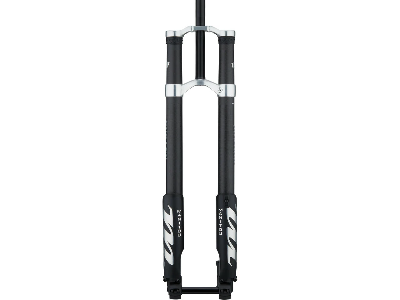 Die Manitou Dorado Pro 29″ Federgabel im auffälligen Upside-Down-Design überzeugt an Downhill-Bikes mit einem sehr leichten und steifen Carbon-Aufbau mit 37-mm-Standrohren und zwei Positivluftkammern für die Feinabstimmung.