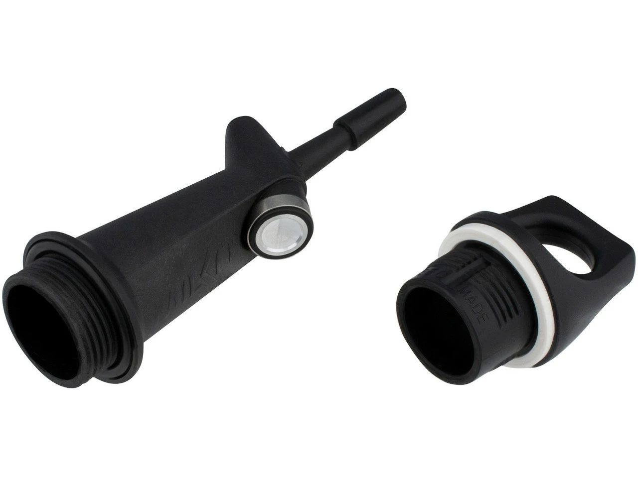 Der milKit Tubeless Booster ist Hochdruck-Luftpumpe und Trinkflasche in einem. Der Booster-Kopf passt auf alle Tubeless-Ventile. Du kannst bis zu 11 bar Luft in die Flasche pumpen, um dann sogar 29″ Reifen aufzupumpen.