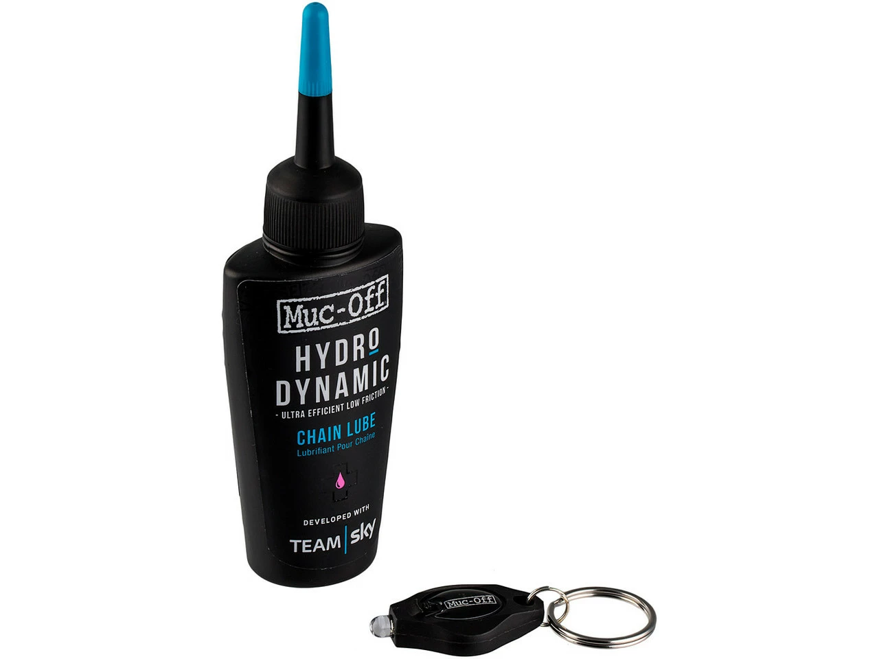 Lieferumfang:1 x Kettenschmiermittel Muc-Off Hydrodynamic1 x Mini-Lampe UV