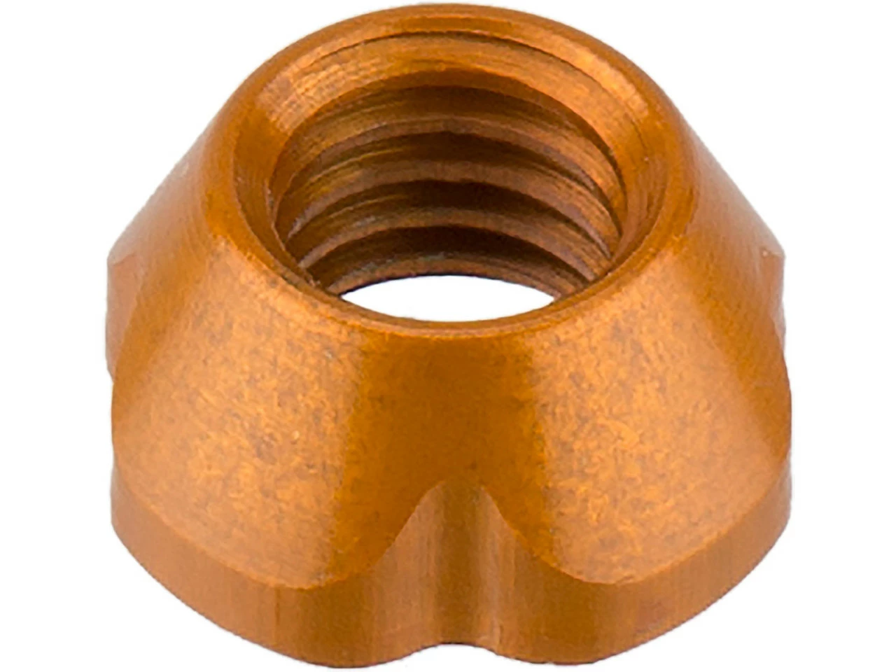 Die Kleeblattmutter zur Dämpferbefestigung verhindert durch Formschluss ein Mitdrehen und kann im Falle einer Beschädigung des Gewindes einfach ausgetauscht werden.