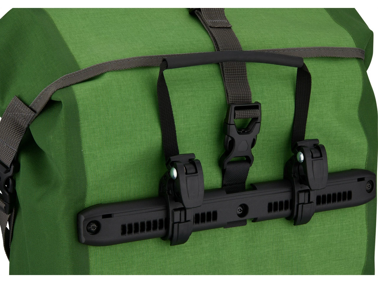 Spezifikationen:Einsatzbereich:Touring & Trekking, CityAusführung:GepäckträgerKompatibilität:für Gepäckträger bis 16 mm Durchmesser (8 mm, 10 mm und 12 mm Reduzierstücke inklusive)Material:Cordura, PU-beschichtet (PS36C)Schutzklasse:staubdicht, kein Staubeintritt, geschützt gegen Spritzwasser aus allen Richtungen (IP64)Maße (HxBxT):42 cm x 23 cm (unten)/32 cm (oben) x 17 cmVolumen:2 x 20 LiterHinweis des Herstellers:Um Schutzklasse IP64 (spritzwassergeschützt aus allen Richtungen) zu erreichen, muss der Verschluss 3-4-mal eingerollt und nach unten abgespannt werden.