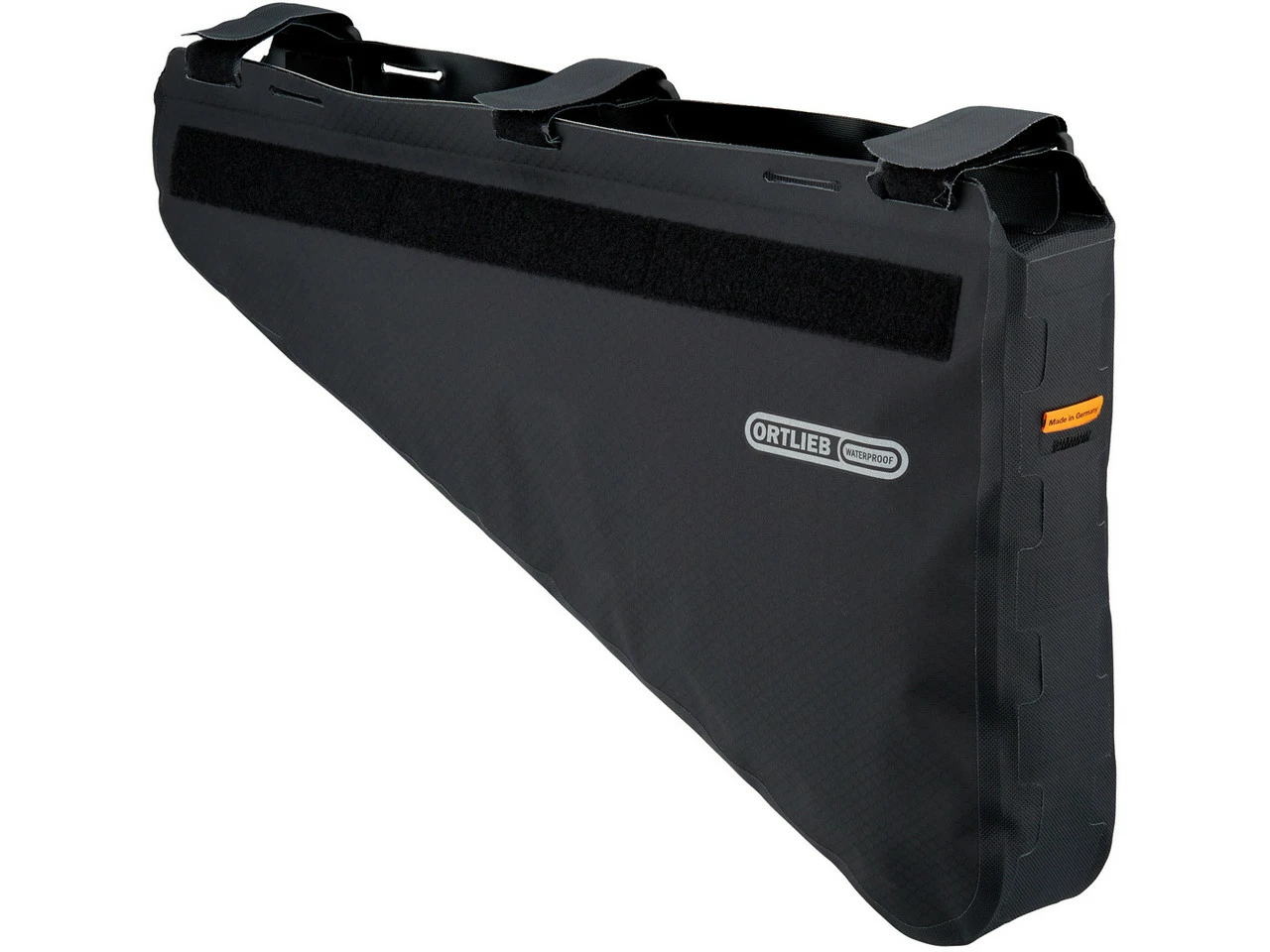 Die ORTLIEB Frame-Pack Rahmentasche ist mit einem Reißverschluss ausgestattet und bietet Stauraum im Rahmendreieck beim Bikepacking. Aufgrund des tiefen Schwerpunktes ist der Platz ideal für Proviant oder schwerere Ausrüstung wie Werkzeug oder Campingkocher. Das leichte, aber robuste Nylongewebe ist wasserdicht beschichtet und stellt zusammen mit dem ebenfalls wasserdichten Reißverschluss optimalen Schutz für Deine Habseligkeiten sicher. Die Tasche sorgt für eine ausgeglichene Gewichtsverteilung und wird mit den individuell positionierbaren, starken Klettverschlüssen einfach angebracht. Dabei ist sie auch für Carbon-Rahmen geeignet.