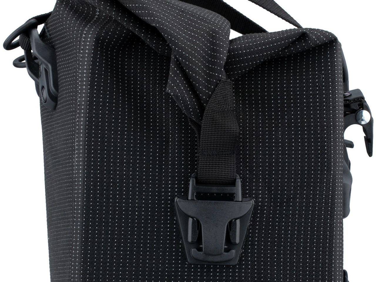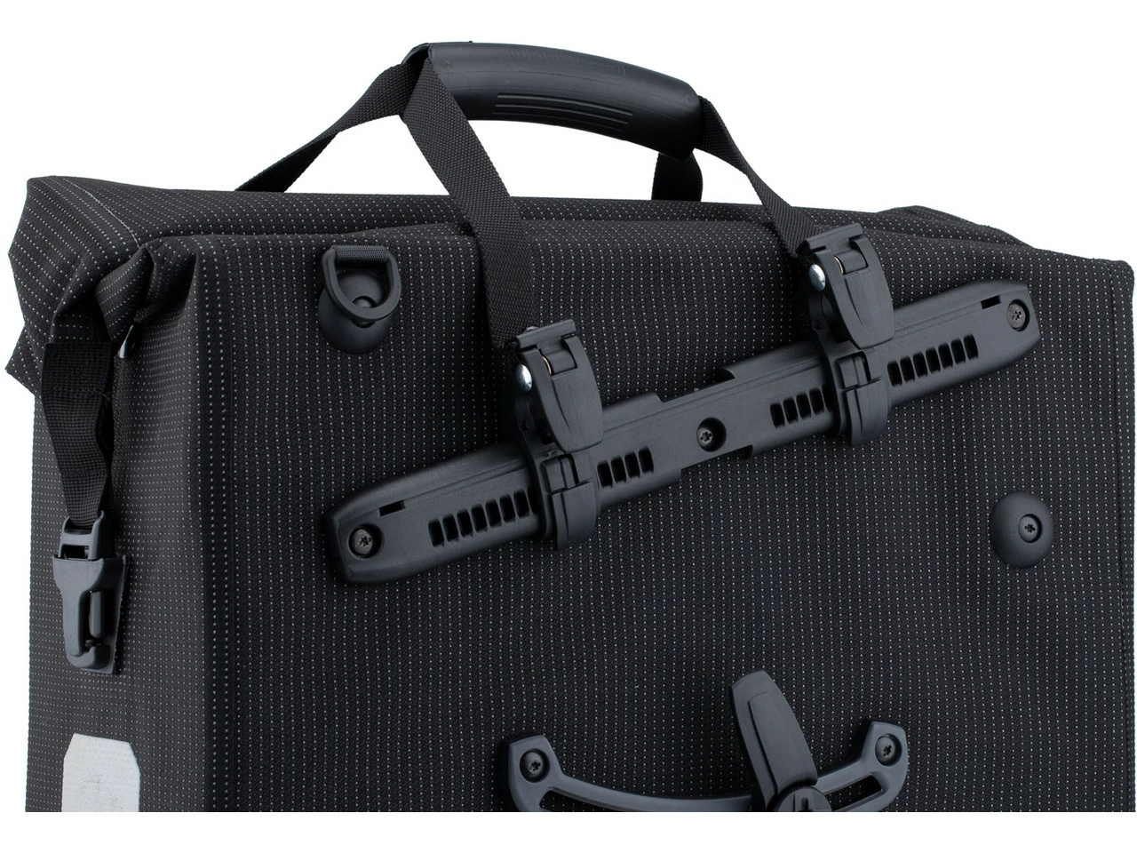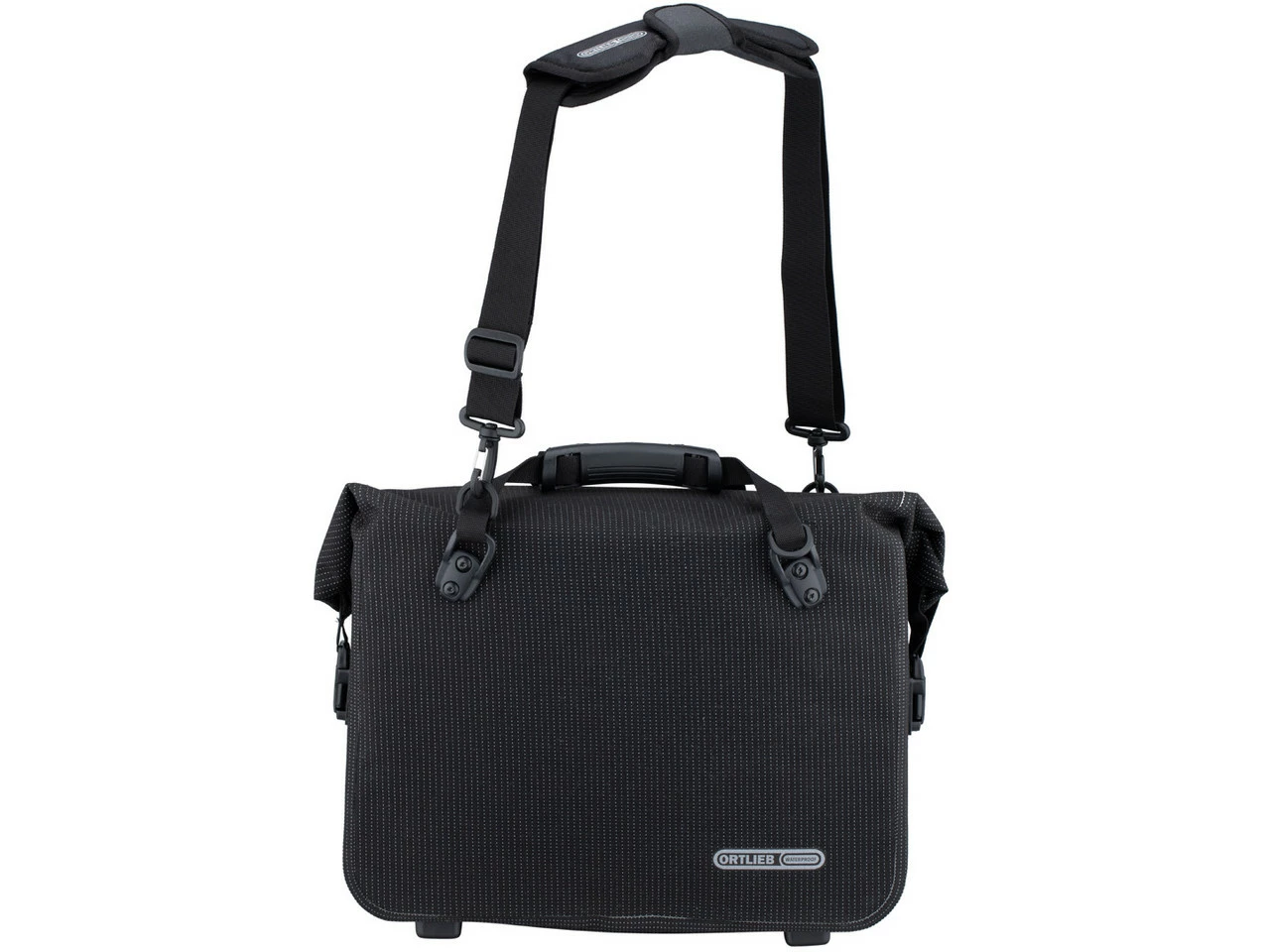 Freigaben:Belastbarkeit (max.):9 kgFeatures:wasserdichte Aktentasche aus vollflächig reflektierendem Gewebe, mit Quick-Lock2.1-HalterungssystemTaschenumfang leuchtet bei LichteinfallRollverschlussPU-beschichtetes Cordura-GewebePlatz für ein oder zwei DIN-A4-Ordner, Schreibwaren, Wertgegenstände etc.Innenunterteilung mit aufgesetzten Taschendurch drehbare Aufhängung wahlweise links (= Standard) oder rechts zu befestigenschräge Einhängung für optimale BeinfreiheitHandgriffabnehmbarer, gepolsterter SchultertragegurtD-Ringe zur Befestigung des Schultertragegurtszwei leuchtstarke Reflektoren aus 3M™ Scotchlite™ Reflexmaterialreflektierendes ORTLIEB-Logo vorneFüßchen zum schonenden Abstellen der Tascheaufgesetzte Scheuerleisten auf der Rückseite links und rechts untenPVC-freiMade in Germany