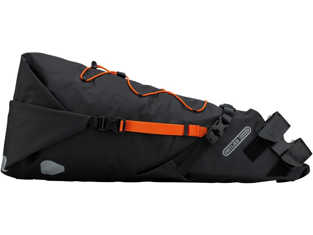 Die ORTLIEB Seat-Pack Satteltasche ist wasserdicht und gehört zur Basisausrüstung für Bikepacker, egal, ob Du einen Tag, ein Wochenende oder länger unterwegs bist. Auf Tagestouren kann das Seat-Pack den Rucksack ersetzen. Dank Innenstabilisierung und versteiftem Boden bleibt die Tasche auch bei holprigem Untergrund immer in Form. Starke Klettverschlüsse und Fixierungen halten sie genau da, wo sie sein soll. So fungiert sie gleichzeitig als Schutzblech. Mit einem Ventil lässt Du überflüssige Luft ab und optimierst so das Packmaß des Inhalts. An der elastischen Kordel oben kannst Du z. B. noch eine Jacke festklemmen, an den Daisy Chains hinten findet beispielsweise ein Rücklicht seinen Platz. Durch den praktischen Rollverschluss hast Du den Inhalt, etwa trockene Klamotten, unkompliziert im Zugriff.