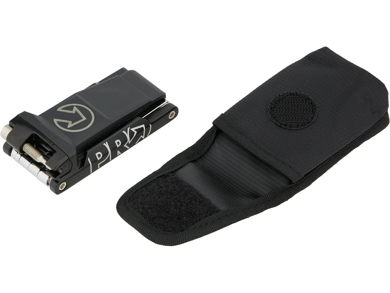 Das Performance 22 Minitool von PRO bietet Dir nicht weniger als 22 Funktionen an einem kompakten Werkzeug. Es ist mit diversen Innensechskant- und Torxschlüsseln, Maulschlüsseln, einem Schraubendreher und verschiedenen Nippelspannern ausgestattet. Ein Kettennieter für 9- bis 12-fach-Ketten ist ebenfalls mit dabei. Du findest dort auch einen Reifenheber, einen Bremsbelagspreizer und einen Kettenhalter.
