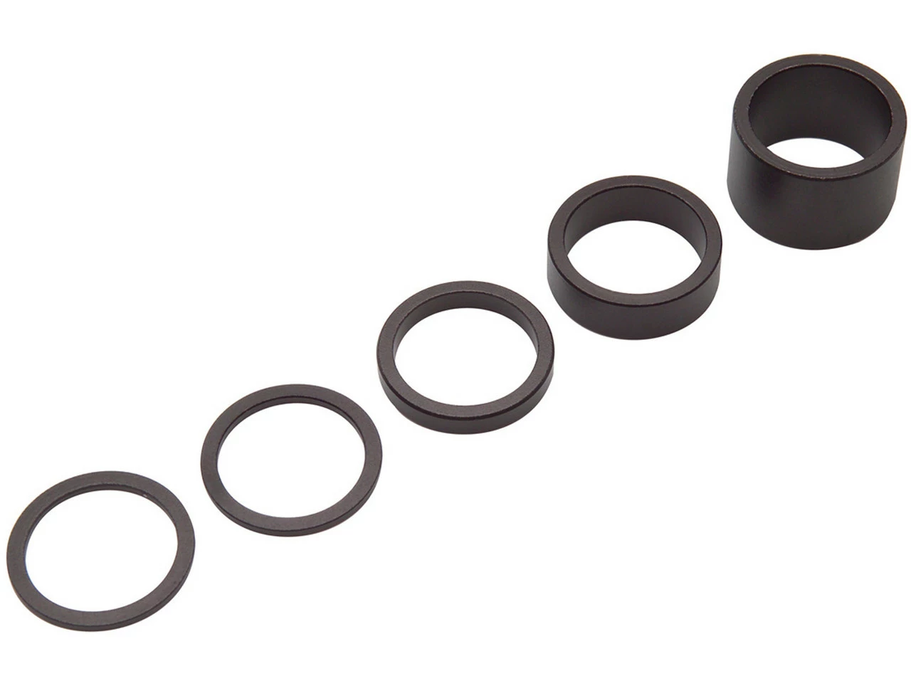 Leichter, 5-teiliger Spacer-Satz aus Aluminium für 1 1/8″ Schaftdurchmesser.