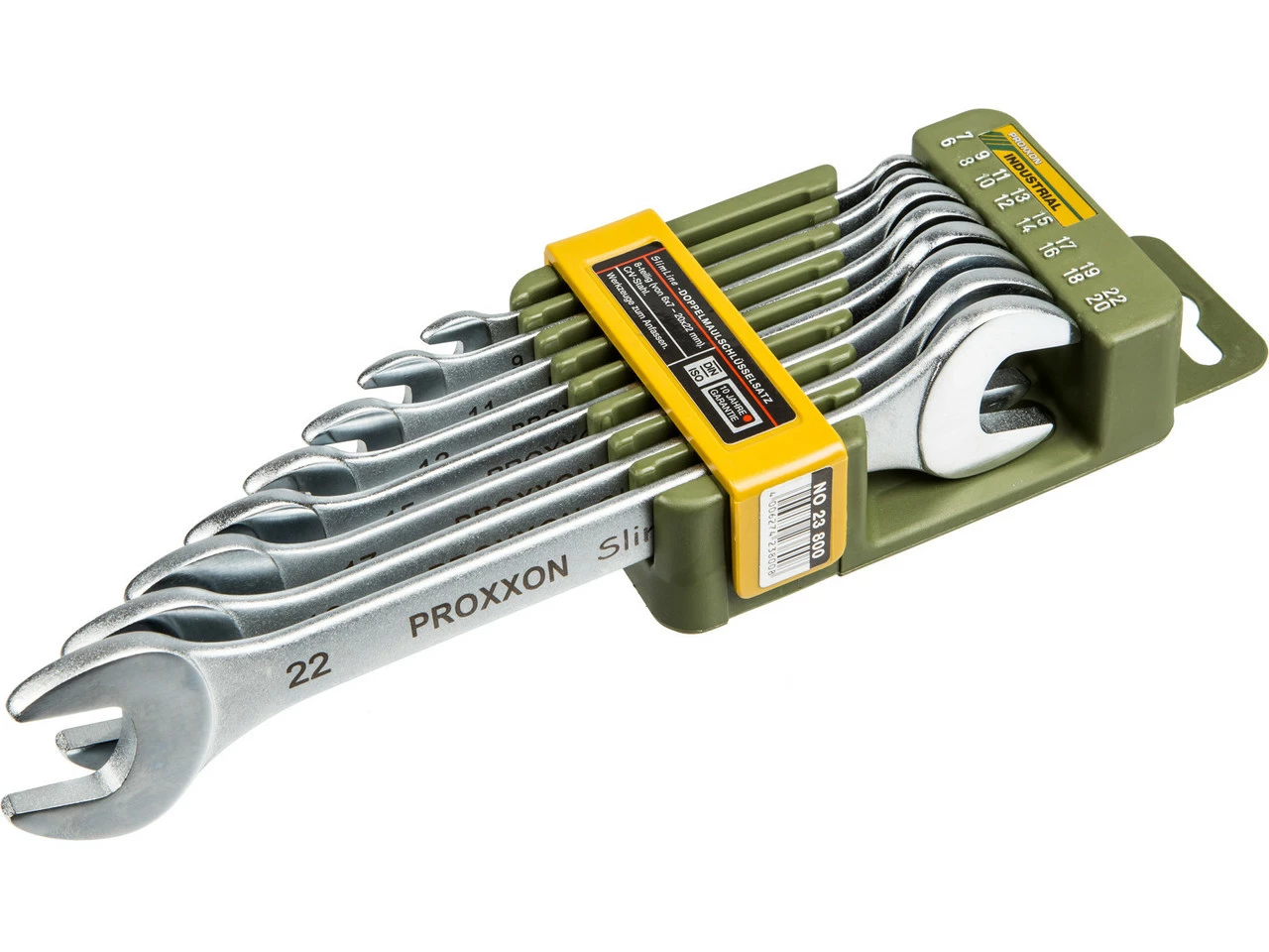 Lieferumfang:8 x Doppel-Maulschlüssel Proxxon SlimLine1 x Kunststoffhalterung Proxxon