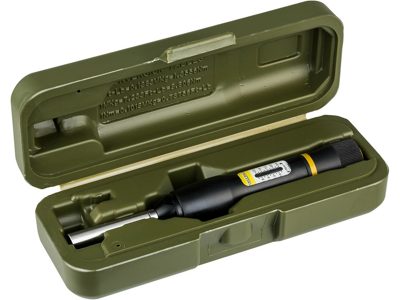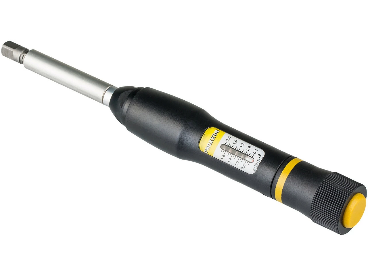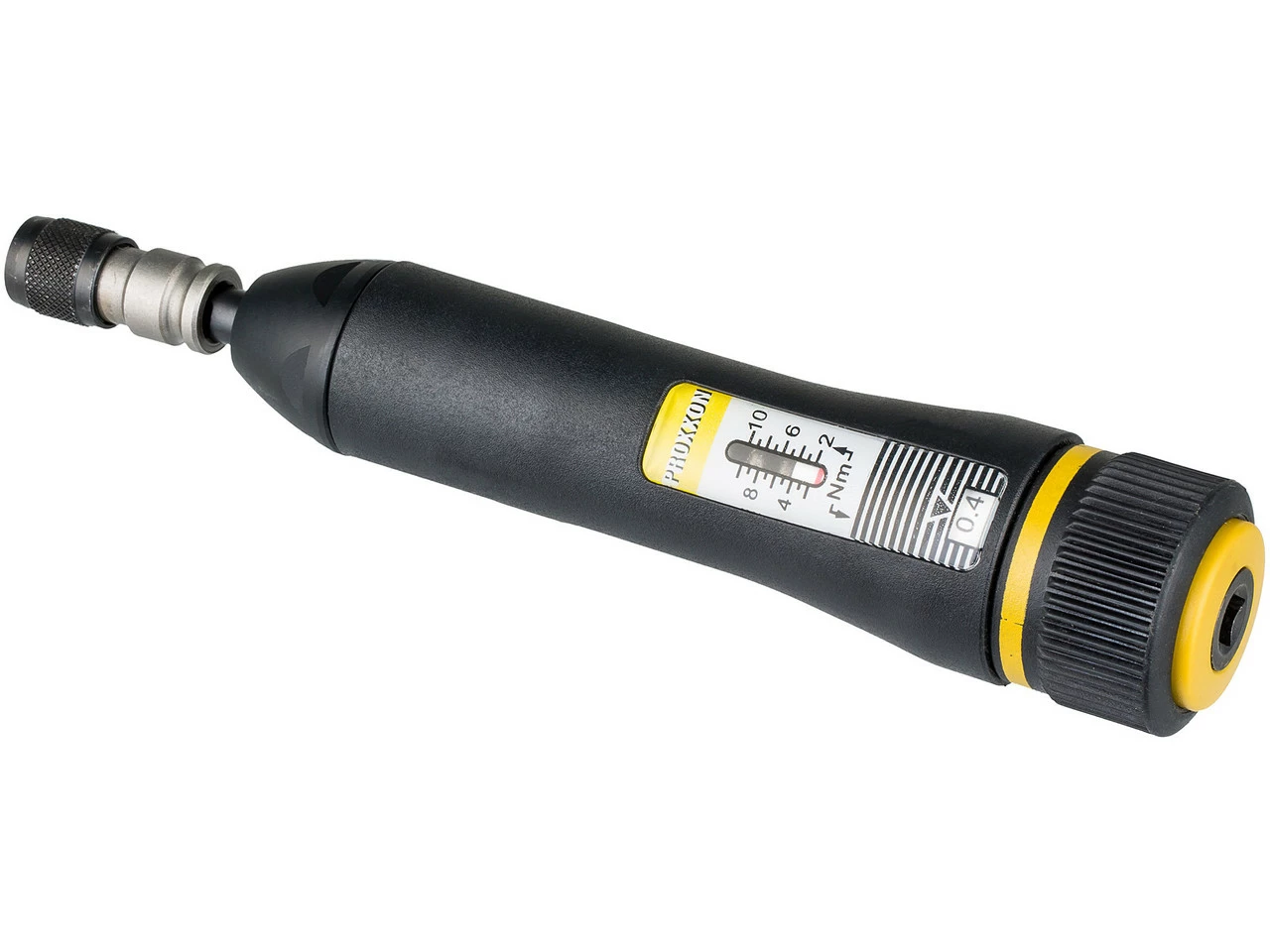 Technische Daten:Material Schaft:StahlAufnahme:1/4″Drehmoment:0,4 – 2 / 2 – 10 NmGenauigkeit:+/- 6 %Teilung:Skalenring mit 0,2-Nm-TeilungFeatures:Präzisionswerkzeugautomatische Auslösung beim Anziehen von Schrauben (Drehmomentmessung nur bei Rechtsgewinde im Rechtslauf)deutlich hör- und fühlbares Click-Signal, wenn das vorgewählte Drehmoment erreicht istEinstellen des Drehmomentes durch Drehen des gerändelten Ringes am Griffende (verrastbar)gut lesbare Fensterskala50 mm langer Schaft mit Magnet-Aufnahme für 6,3-mm-Standardbits (1/4″ – nur bei Version 0,4 – 2 Nm)zusätzliche Mikro-Skala zur Feinjustierung (1 Drehung = 2 Nm – nur bei Version 2 – 10 Nm)stirnseitig 1/4″ -Aufnahme zum Aufsetzen eines T-Griffes mit Gleitstück (nur bei Version 2 – 10 Nm)Ausführungen:0,4 – 2 Nm: