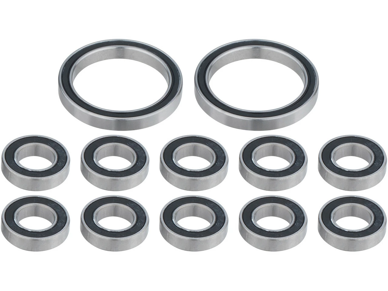 Mit dem RAAW Mountain Bikes Lagerkit bekommst Du alle notwendigen Kugellager für Dein Bike auf einen Schlag. Zwei 6808-2RS Kugellager kommen an der Hauptlagerachse und zehn 6902V-2RS Kugellager an den übrigen Drehpunkten zum Einsatz.