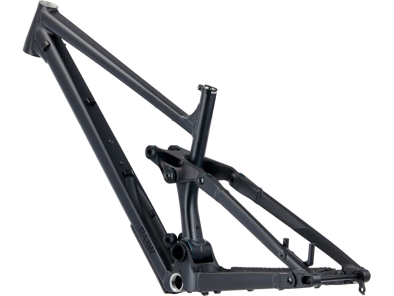 Der RAAW Mountain Bikes Madonna V2.2 Rahmen wird hier durch einen Float X2 Dämpfer von Fox Racing Shox ergänzt und ist eine optimale Basis für ein langlebiges, robustes Enduro-Bike. Der Dämpfer mit einem feinen Ansprechverhalten, das an Stahldämpfer erinnert, ermöglicht die Einstellung von High- und Low-Speed-Druck- und Zugstufe und bietet zudem einen 2-Positionen-Hebel für die schnelle Einstellung unterwegs. Mitgeliefert wird direkt ein passender Acros Steuersatz. Im Vergleich zum Vorgänger wurden beim Madonna V2.2 vor allem das Sitzrohr und damit zusammenhängende Schnittstellen wie Tretlager, Hinterbaugelenke und Dämpferaufnahme überarbeitet. RAAW haben außerdem ein eigenes Steckachssystem entwickelt, das die Steifigkeit erhöht und das Lockern der Achse während der Fahrt verhindert. Vom Vorgänger übernommen wurden bewährte Eigenschaften, die den Charakter des Bikes ausmachen. Eine Besonderheit ist die Variation von Dämpfer und Rocker: Die 60-mm-Variante (Größen S, M, L) für 60 mm Dämpferhub ist mit dem daraus resultierenden höheren Übersetzungsverhältnis optimal für ein leichteres Fahrergewicht bis 90 kg. Die 65-mm-Variante (Größen L, XL) für 65 mm Dämpferhub eignet sich hingegen am besten für Fahrer ab 90 kg. So haben alle denselben Fahrspaß. Alle Drehpunkte und Endkappen sind abgedichtet, die Dämpferaufnahme ist ebenfalls mit Kugellagern ausgestattet. Die Bremsaufnahme ist ein eigenes Bauteil und erspart Dir zusätzliche Adapter. Mit Inserts kannst Du außerdem die Kettenstrebenlänge nach Deinen Wünschen anpassen. Damit die Wartung leichter fällt, werden alle Züge außen verlegt. Mit dem Madonna V2.2 kommst Du nicht nur schwungvoll den Berg hinunter, auch bergauf zeigt es gute Klettereigenschaften. Die ausbalancierte Geometrie ermöglicht eine zentrale Sitzposition kombiniert mit Laufruhe und Berechenbarkeit. Und auch an Deine Ausrüstung ist gedacht: Am Oberrohr befinden sich zwei Gewinde zur Befestigung von Zubehörtaschen, damit Du auch ohne Rucksack das Wichtigste immer direkt dabei hast.