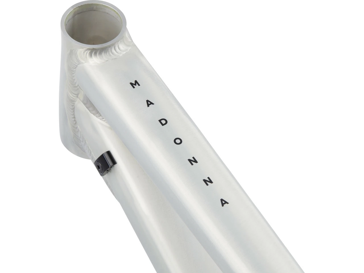 Der RAAW Mountain Bikes Madonna V2.2 Rahmen wird hier durch einen ÖHLINS TTX 2 Air Dämpfer ergänzt und ist eine optimale Basis für ein langlebiges, robustes Enduro-Bike. Beim Luftfederdämpfer kannst Du High- und Low-Speed-Druckstufe einstellen, außerdem bietet er ein sensibles Ansprechverhalten und hohe Kontrolle. Mitgeliefert wird direkt ein passender Acros Steuersatz. Im Vergleich zum Vorgänger wurden beim Madonna V2.2 vor allem das Sitzrohr und damit zusammenhängende Schnittstellen wie Tretlager, Hinterbaugelenke und Dämpferaufnahme überarbeitet. RAAW haben außerdem ein eigenes Steckachssystem entwickelt, das die Steifigkeit erhöht und das Lockern der Achse während der Fahrt verhindert. Vom Vorgänger übernommen wurden bewährte Eigenschaften, die den Charakter des Bikes ausmachen. Eine Besonderheit ist die Variation von Dämpfer und Rocker: Die 60-mm-Variante (Größen S, M, L) für 60 mm Dämpferhub ist mit dem daraus resultierenden höheren Übersetzungsverhältnis optimal für ein leichteres Fahrergewicht bis 90 kg. Die 65-mm-Variante (Größen L, XL) für 65 mm Dämpferhub eignet sich hingegen am besten für Fahrer ab 90 kg. So haben alle denselben Fahrspaß. Alle Drehpunkte und Endkappen sind abgedichtet, die Dämpferaufnahme ist ebenfalls mit Kugellagern ausgestattet. Die Bremsaufnahme ist ein eigenes Bauteil und erspart Dir zusätzliche Adapter. Mit Inserts kannst Du außerdem die Kettenstrebenlänge nach Deinen Wünschen anpassen. Damit die Wartung leichter fällt, werden alle Züge außen verlegt. Mit dem Madonna V2.2 kommst Du nicht nur schwungvoll den Berg herunter, auch bergauf zeigt es gute Klettereigenschaften. Die ausbalancierte Geometrie ermöglicht eine zentrale Sitzposition kombiniert mit Laufruhe und Berechenbarkeit. Und auch an Deine Ausrüstung ist gedacht: Am Oberrohr befinden sich zwei Gewinde zur Befestigung von Zubehörtaschen, damit Du auch ohne Rucksack das Wichtigste immer direkt dabei hast.