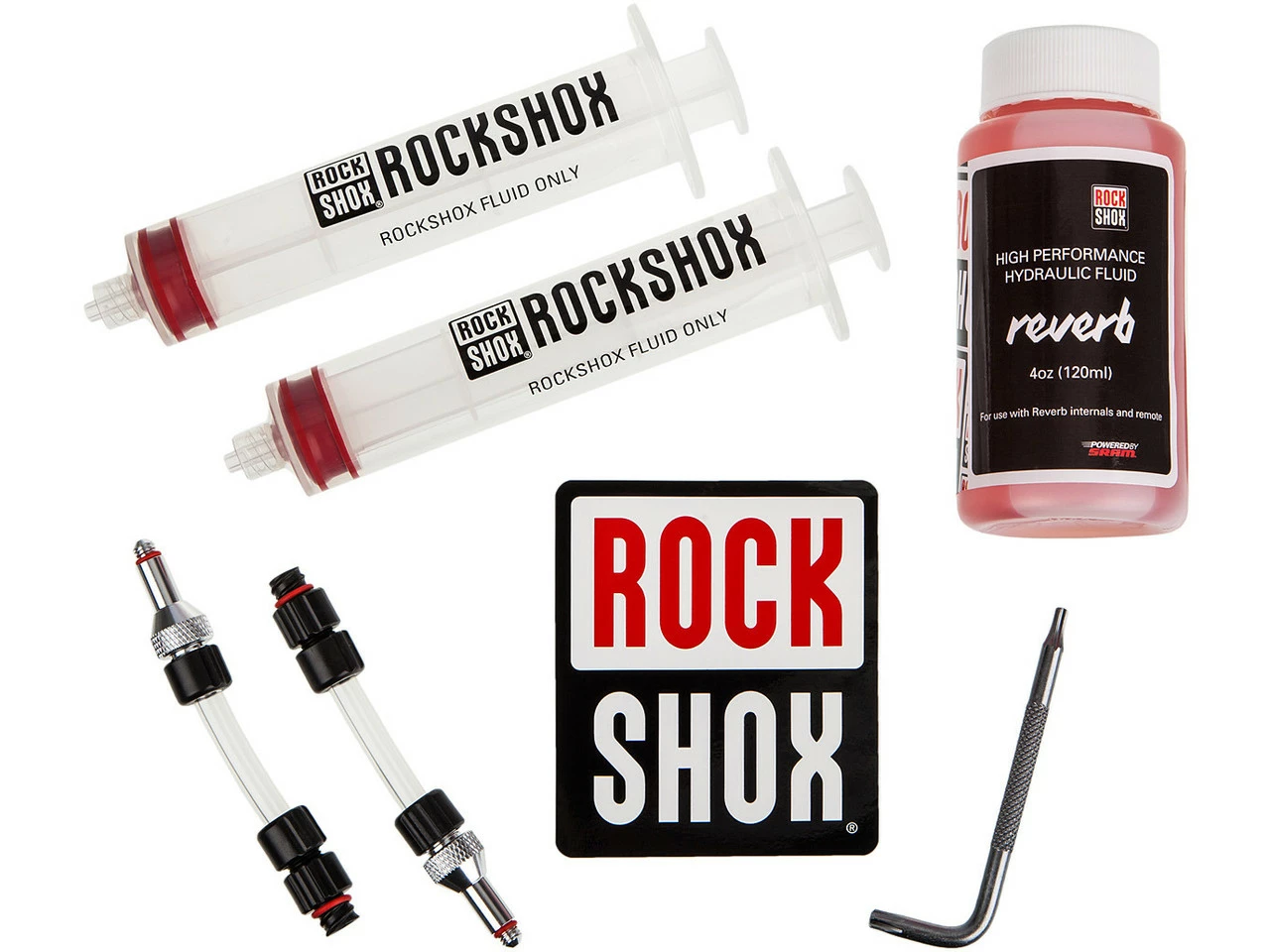 Lieferumfang:2 x Spritze RockShox2 x Leitungsanschluss RockShox1 x Torx-Winkelschlüssel RockShox T10/T251 x Öl RockShox 120 ml