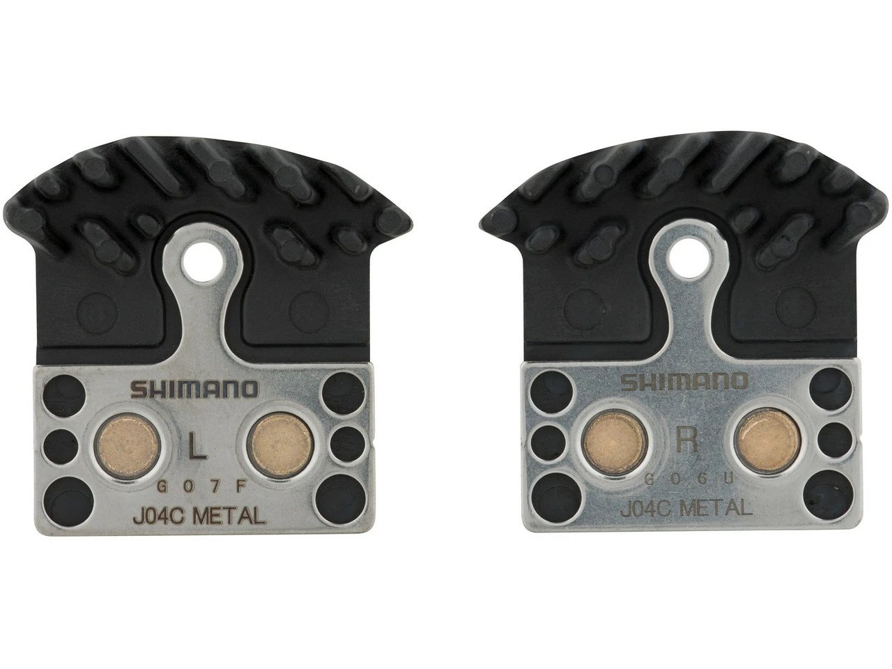 Die Shimano Bremsbeläge J04C weisen Ice-Tech Kühlrippen auf, welche die Wärmeableitung, Fadingresistenz und Bremsleistungskonstanz fördern. Ihr metallischer Belag befindet sich auf einer leichten Aluminium-Trägerplatte. J04C ist kompatibel mit XTR (bis M9000), XT, SLX und Deore 2-Kolben-Bremsen sowie mit Postmount Road Scheibenbremsen.