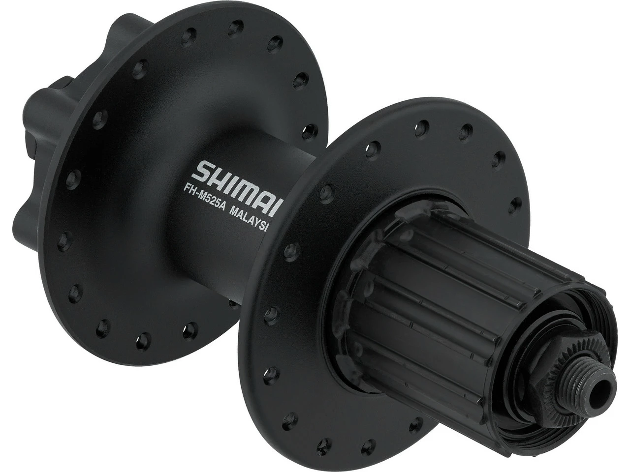 Die Shimano FH-M525A Hinterrad-Nabe ist im Gegensatz zu fast allen anderen Shimano Naben mit 6-Loch Scheibenbremsen kompatibel. Sie kann an Mountainbikes mit einem hinteren Einbaumaß von 10 x 135 mm eingesetzt werden. Das Konuslager überzeugt durch superpolierte Lagerlaufflächen und reibungsarme Funktion. Der Nabenkörper der FH-M525A besteht aus eloxiertem Aluminium, Achse und Freilauf sind aus Stahl. Ein Schnellspanner mit Alu-Hebel wird mitgeliefert.