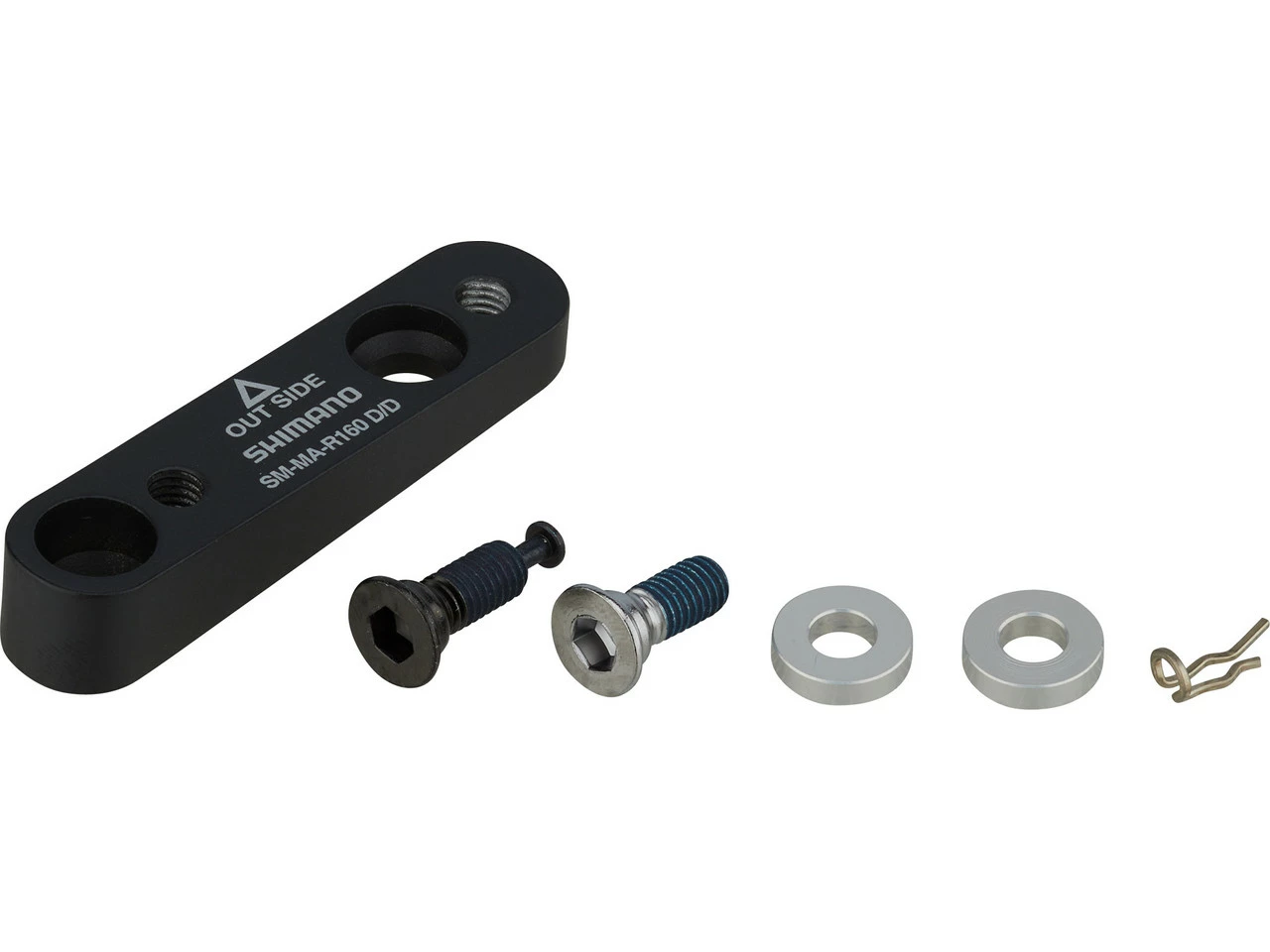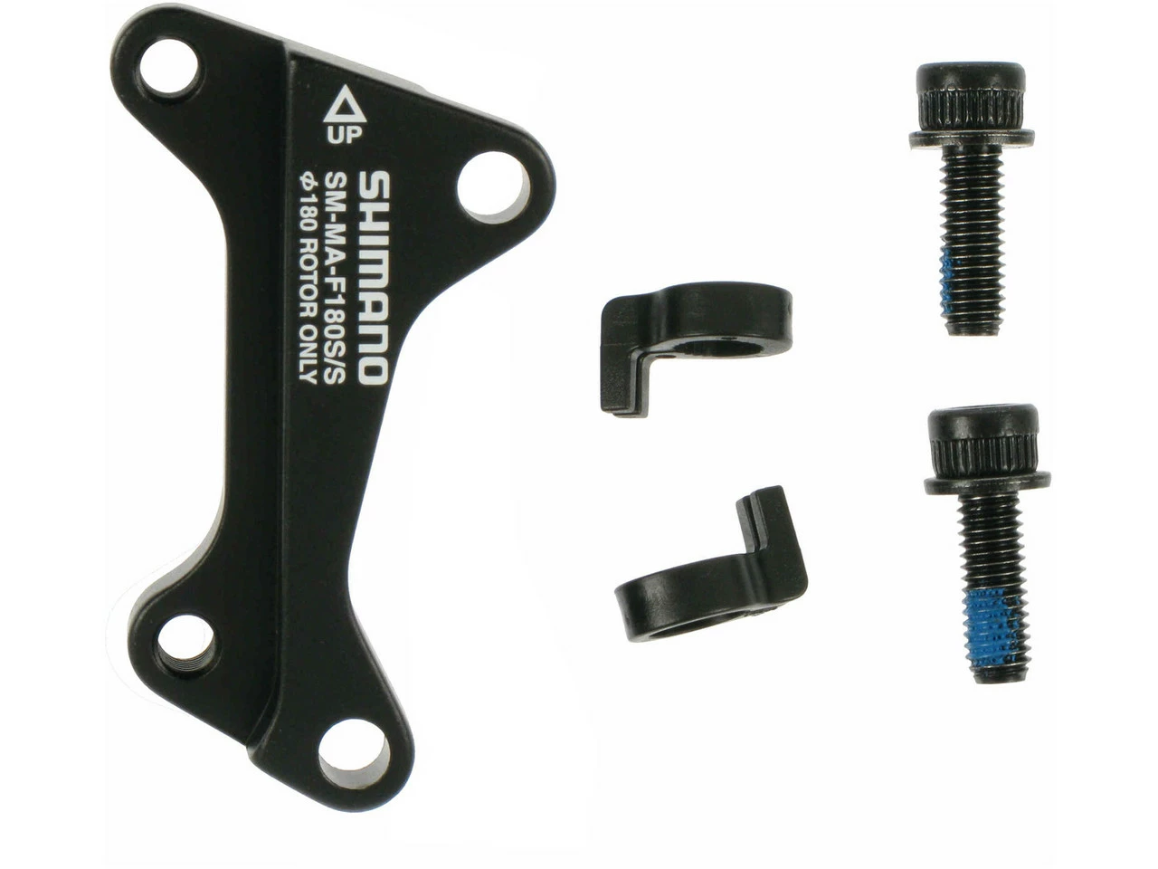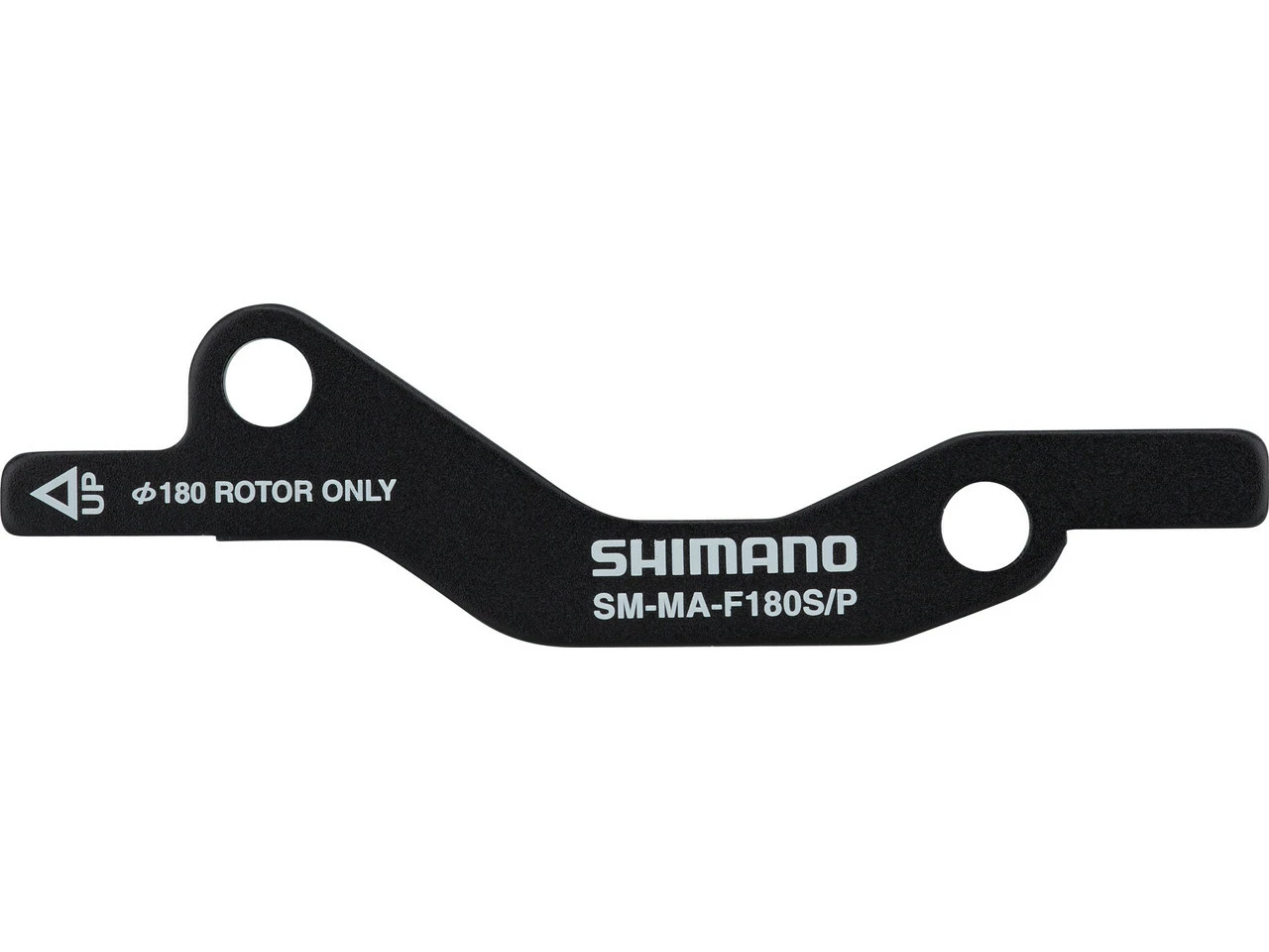 Der Shimano Scheibenbremsadapter für 180 mm Bremsscheibe ermöglicht die Angleichung verschiedener Standards von Bremssattel und Rahmen bzw. Gabel. So lassen sich damit IS-Bremssättel an Postmount-Gabeln betreiben wie auch umgekehrt. Des Weiteren gibt es Versionen, um IS-Gabeln, welche nur die direkte Montage von 160 mm Bremsscheiben erlauben, und IS-Rahmen, die für 140 mm Bremsscheibe ausgelegt sind, an eine 180 mm Scheibe zu adaptieren. Dasselbe findet sich auch bei Postmount: Hier wird der Unterschied zwischen 160 mm (Direktmontage) und 180 mm überbrückt. Die Flat-Mount-Ausführungen sind ausschließlich für Rahmen bzw. Gabeln gedacht, die auf 160 mm und 180 mm Bremsscheiben ausgelegt sind. Der Lieferumfang variiert von Ausführung zu Ausführung.