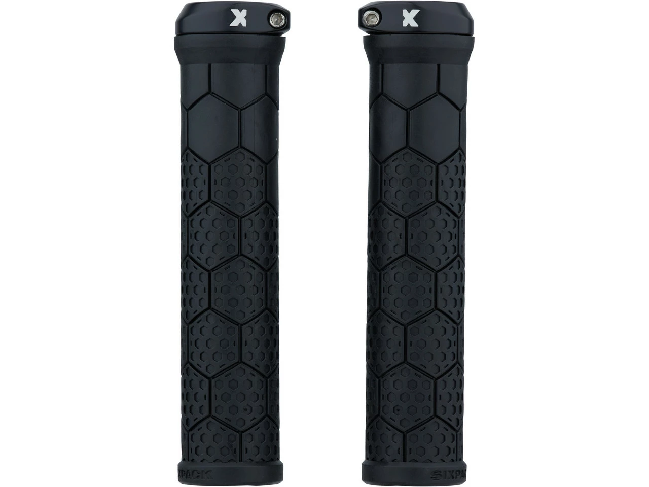 Die Sixpack Racing Z-Trix AL Lenkergriffe haben einen eher schmalen Durchmesser von 28 mm und weisen neben einem dämpfenden Wabenprofil einen Klemmring aus CNC-gefertigtem Aluminium auf.