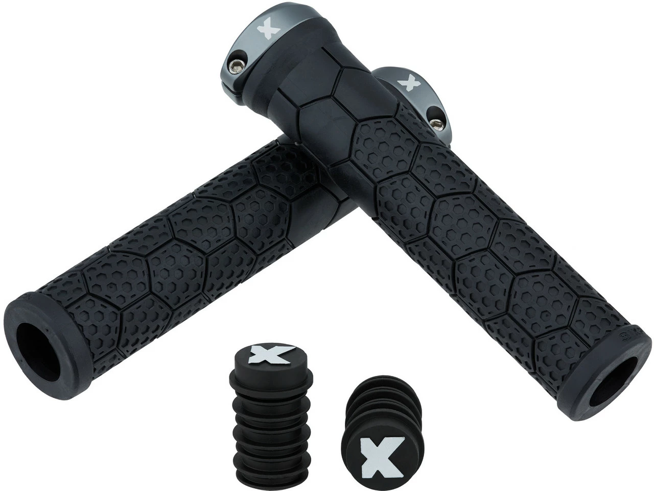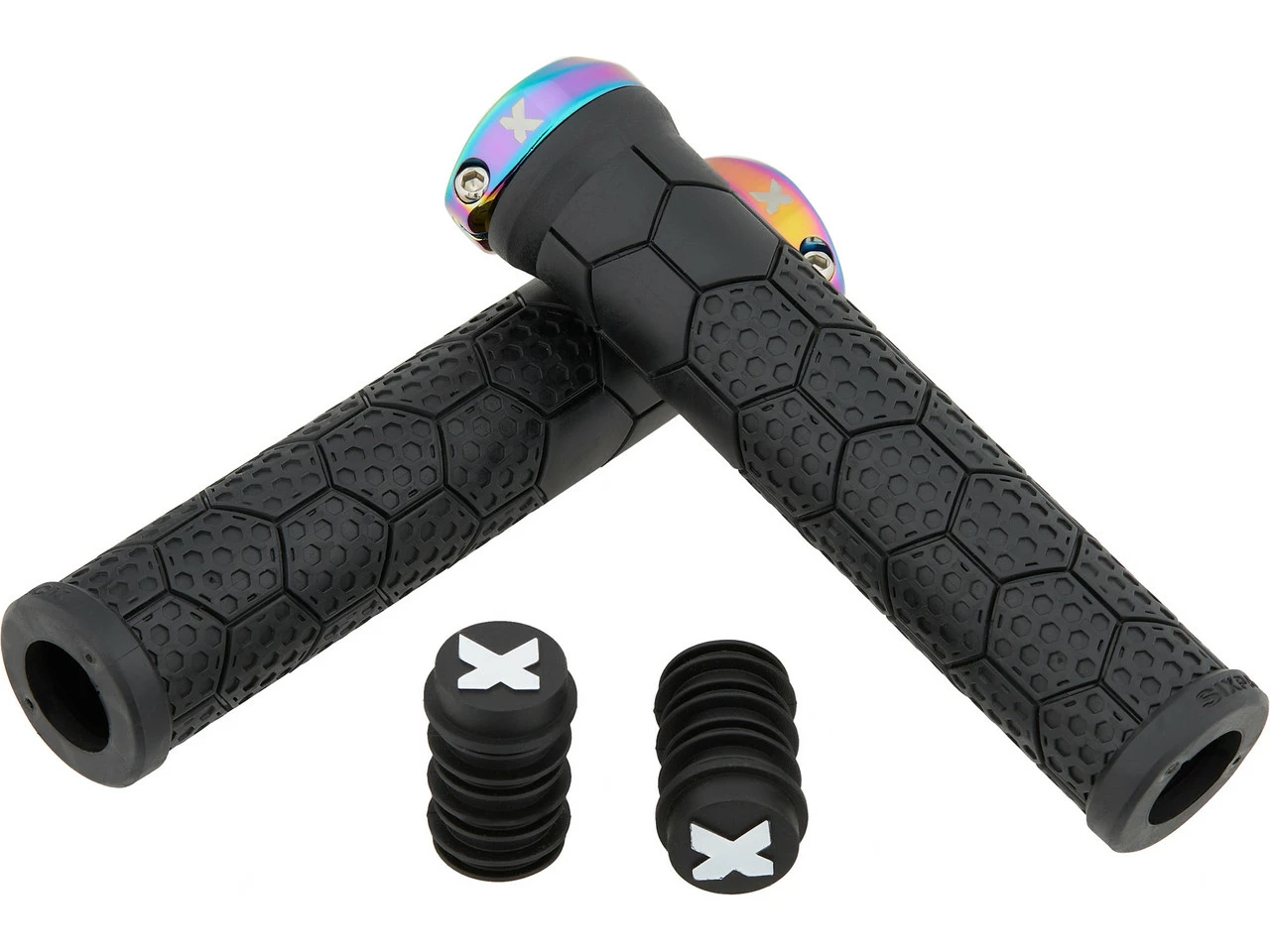 Die schmaleren Z-Trix AL Lenkergriffe von Sixpack Racing mit Wabenprofil und Aluminium-Klemmring