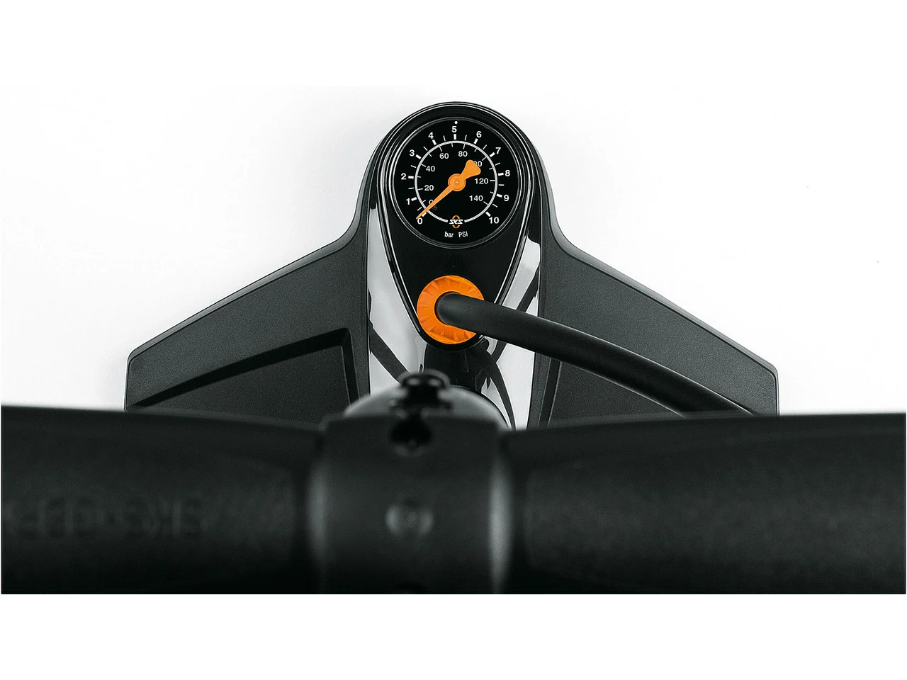 Stabile und extrem leichte Kunststoff-Standpumpe mit Manometer zur präzisen Druckkontrolle. Anziege in bar und psi. Einfache Handhabung durch den bewährten SKS-Pumpenkopf mit Klemmhebel. Pumpt leicht bis 8 bar / 15 psi.