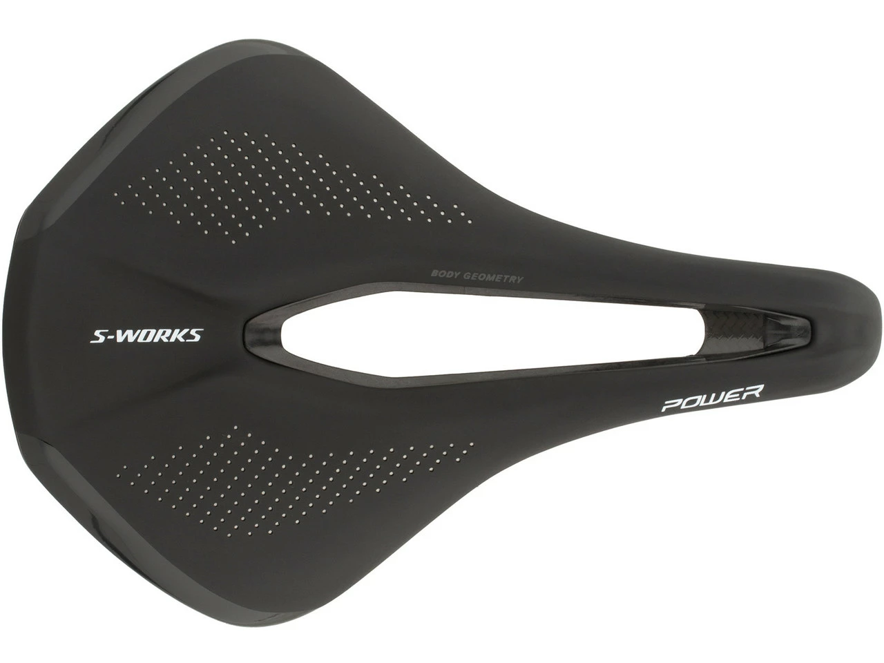 Der Specialized S-Works Power Carbon ist ein Sattel mit kurzer Nase und breiter Aussparung, welcher durch besonders geringes Gewicht und hohe Steifigkeitswerte überzeugt. Das liegt sowohl an der Sattelschale, die aus sorgfältig ausgewählten, fachkundig verarbeiteten Carbonfasern besteht (FACT™-Technologie), als auch an den robusten Oversize-Carbonstreben. Dank Body Geometry Satteldesign wird sogar bei aggressiver Sitzposition die Blutzirkulation aufrechterhalten, was zu mehr Pedaliereffizienz führt. Die Polsterung aus leichtem PU-Schaumstoff fällt dünner aus als bei anderen Sätteln von Specialized, was für direktes Feedback ohne ausgesprochenen Dämpfungseffekt sorgt. In der Sattelschale befinden sich zwei Gewinde, die das Anbringen von SWAT™-Zubehör erlauben. Der S-Works Power eignet sich für Männer und Frauen gleichermaßen, allerdings gibt es auch ein spezielles Damen-Modell mit MIMIC-Technologie.