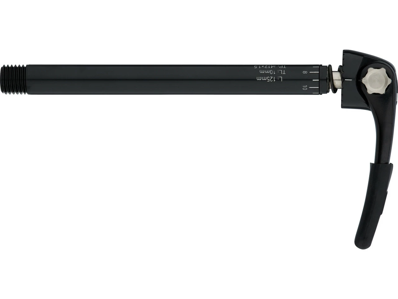 Spezifikationen:Einbaubreite:VR: 100 mmAchsdurchmesser:12 mmTyp:Steckachse mit SchnellspannhebelFeatures:hohe Klemmkraftwerkzeugfreie MontageAusführungen:12 x 100 mm, 1,5 mm, 137 mm: