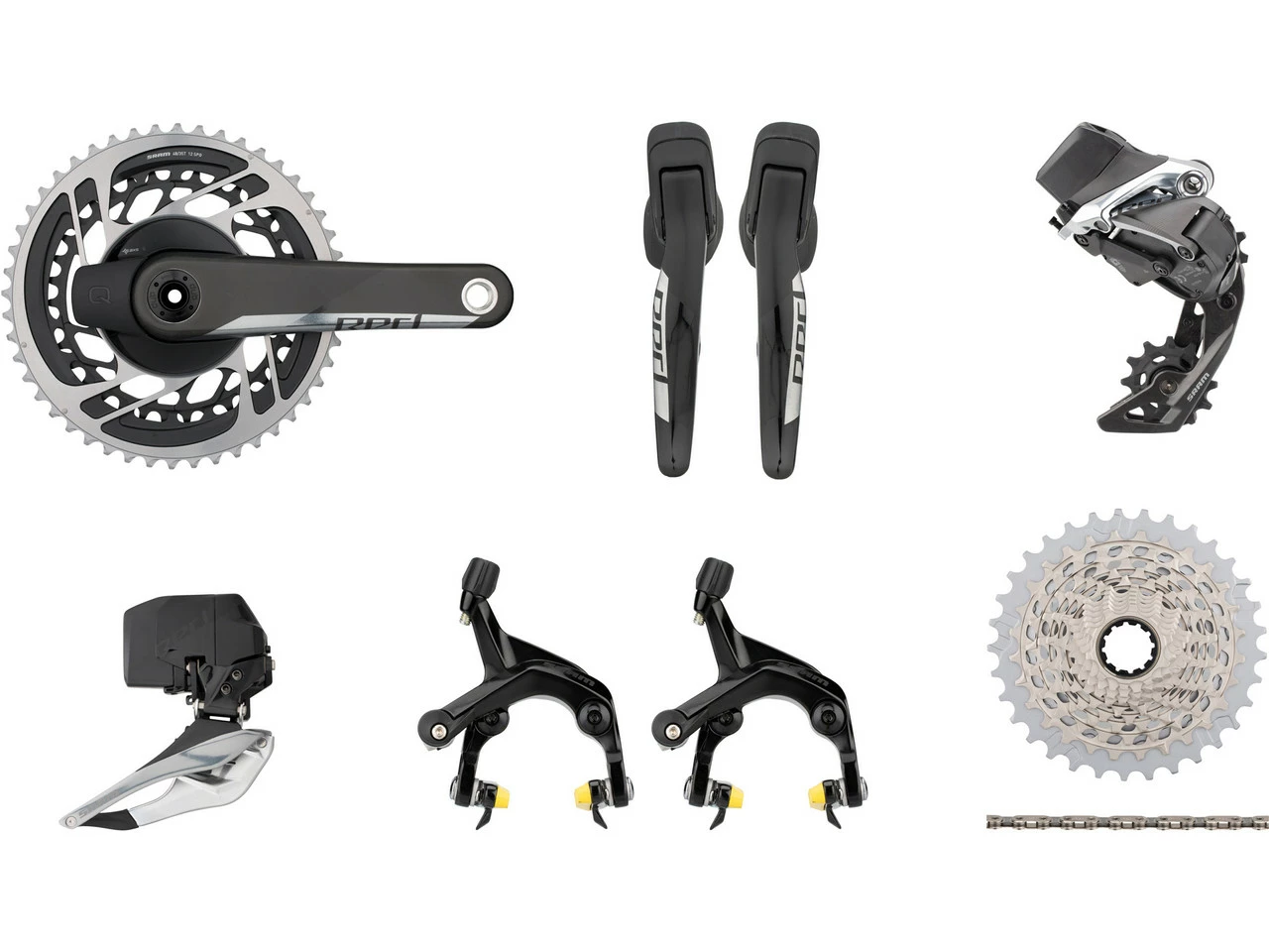 Features:Powermeter Kurbel mit QUARQ TechnologieSchaltwerk mit AkkuYaw™ Umwerfer mit AkkuKassette XDR-kompatibelKette mit Flattop Powerlock KettenschlossVR-Bremse: direkte GabelhalterungHR-Bremse: direkte SitzstrebenhalterungLieferumfang:1 x Kurbelgarnitur QUARQ Red AXS Powermeter (35-48 Zähne)1 Paar Schalt-/Bremsgriffe SRAM Red eTap AXS Road1 x Umwerfer SRAM eTap AXS mit Akku1 x Schaltwerk SRAM eTap AXS mit Akku1 Paar Felgenbremsen SRAM S-900 (VR und HR)1 x Kassette SRAM XG-12901 x Kette SRAM Red 12-fach1 x Akkuladegerät1 x Kabel1 x Kettenschloss SRAM PowerLock2 Paar Bremsbeläge für Carbonfelgeninkl. Bremsen-Befestigungsmaterialinkl. Bremszüge und Außenhüllen