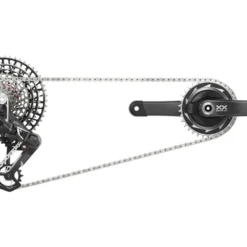 Diese gewichtsoptimierte SRAM XX SL Eagle Transmission AXS Gruppe für einen elektronischen, drahtlosen 1×12-fach-Antrieb am Mountainbike ist mit einem Powermeter-Spider zur Leistungsmessung ausgestattet. Du erhältst eine Powermeter-Kurbel, ein elektronisch angesteuertes Schaltwerk mit AXS-Controller, eine Kassette sowie eine Kette, allesamt aus der auf niedriges Gewicht ausgelegten XX-SL-Serie für den Cross-Country-Einsatz.