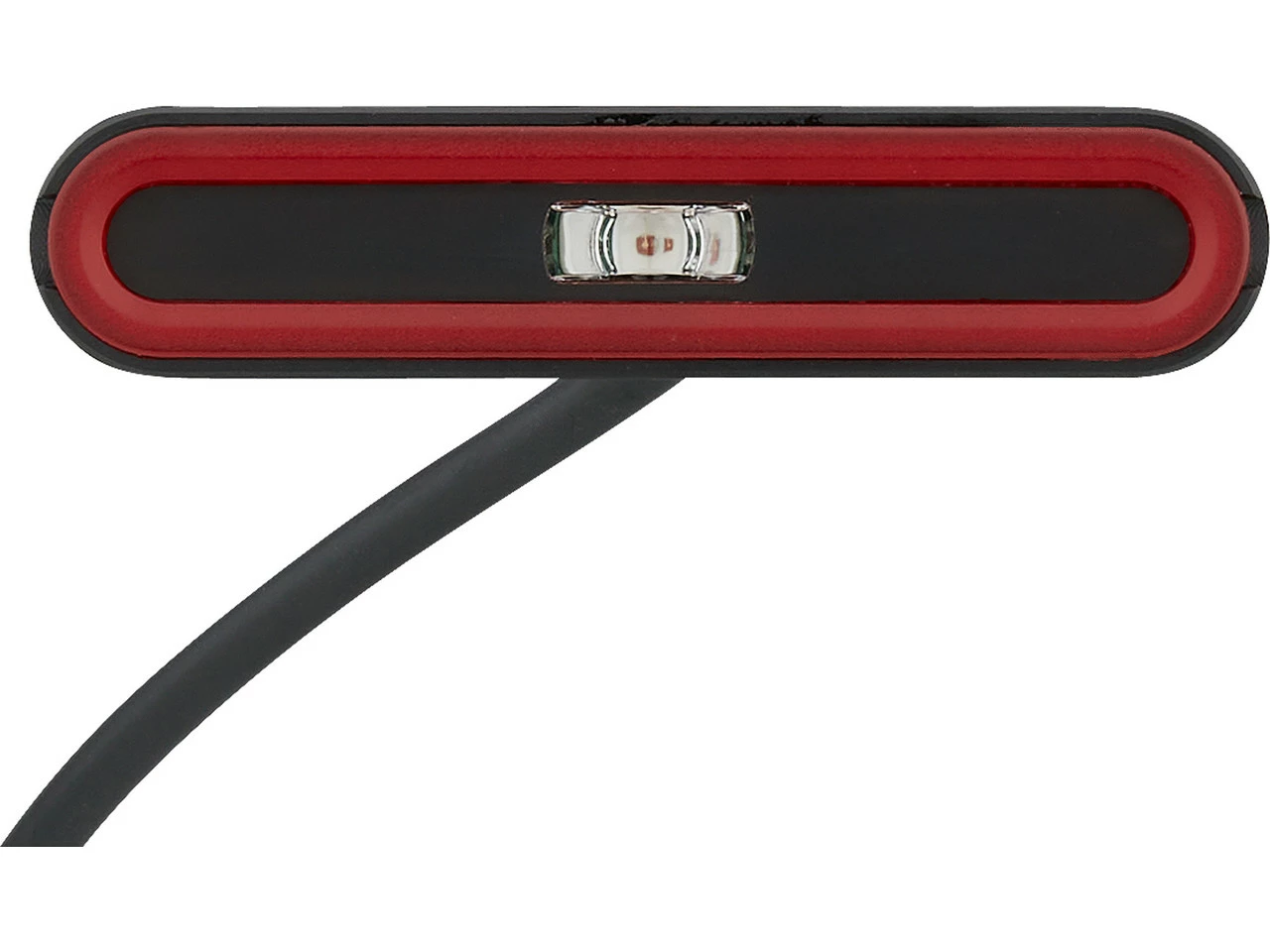 Spezifikationen:Ausführung:Rücklicht (rot)Montage:Gepäckträger (evtl. Adapter erforderlich), Sattelstütze (Halterung nicht im Lieferumfang)Leuchtmittel:LED (32)Leuchtkraft:6 cd (Rücklicht), 60 cd (Bremslicht)Betriebsmittel:E-Bike-AkkuTechnische Daten:Spannung:6 – 12 VMaße (H x B x T):14 mm x 64 mm x 20 mmKabellänge:2000 mmMaterial:AluminiumStandlicht:Ja (abschaltbar)Freigaben:Zulassung im Straßenverkehr:Ja, für Fahrräder (nach §67 StVZO)Prüfziffer:K~~1941Kompatibilität:Gepäckträger mit 50 mm Lochabstand und mittiger Kabelführung (alternative Kabelführung mit Multirack Adapter möglich)Features:für E-Bikes bis 25 km/heloxiertes Aluminiummit Bremslicht durch Verzögerungssensor, auch aus über 1.000 m Entfernung sichtbarpulsierendes Leuchtsignal bei NotbremsungHerstellernummer:V-TL3VZ-K-BLK