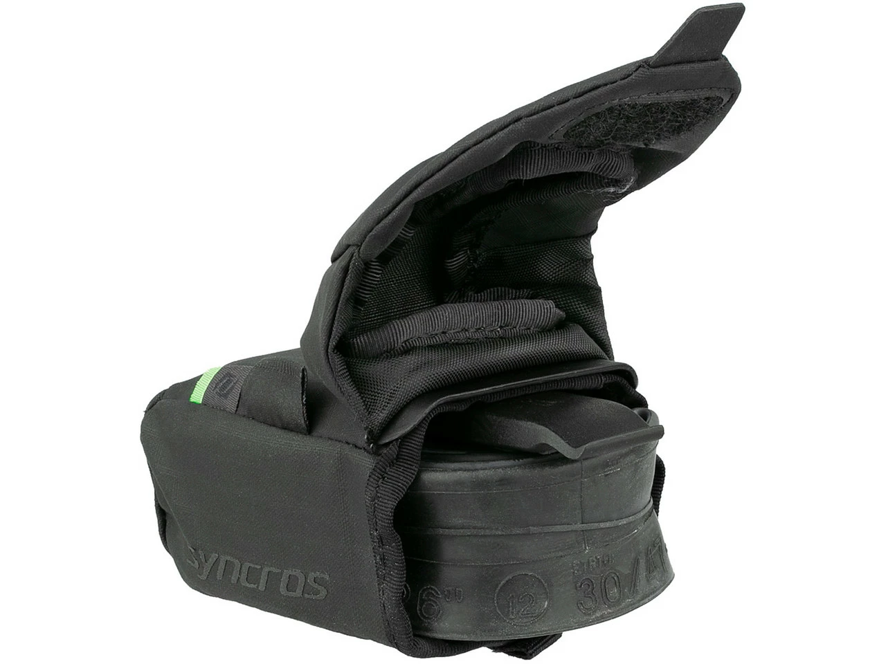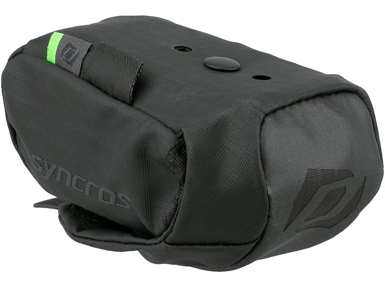 Die Satteltasche ist speziell für den Mountainbike-Einsatz konzipiert, hat extra etwas mehr Platz für einen Mountainbike-Schlauch sowie Reifenheber und passt in die Sattelschienen von Syncros-kompatiblen Sätteln.