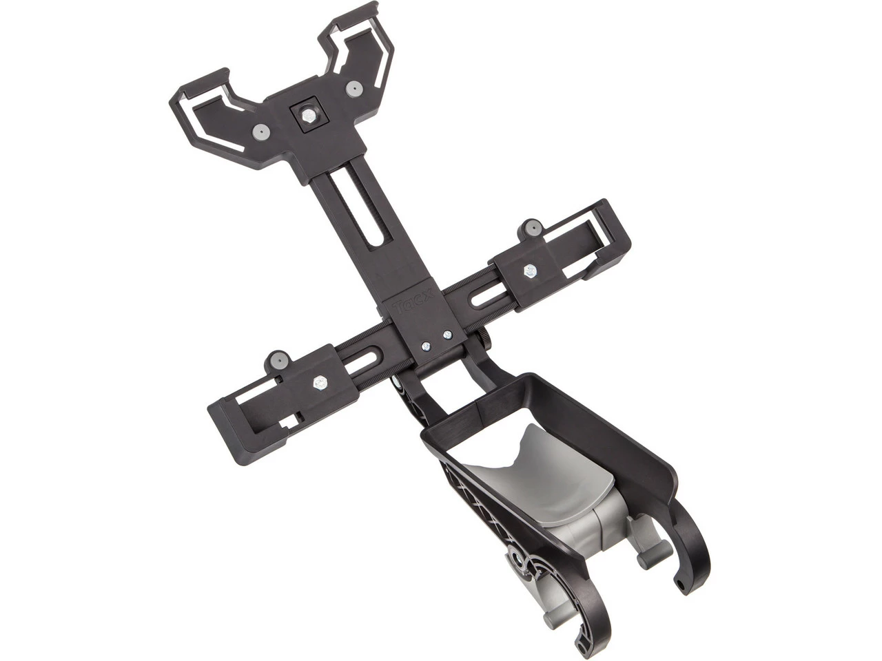 Diese Lenkerhalterung ist für die Montage eines Tablets auf dem Lenker konzipiert. Geeignet für Lenker mit einem Durchmesser von 26 bis 35 mm und verstellbar für verschiedene Bildschirmgrößen. Die Halterung ist so ausgelegt, dass das Tablet weit genug entfernt ist, damit während des Trainings kein Schweiß auf das Display tropfen kann.