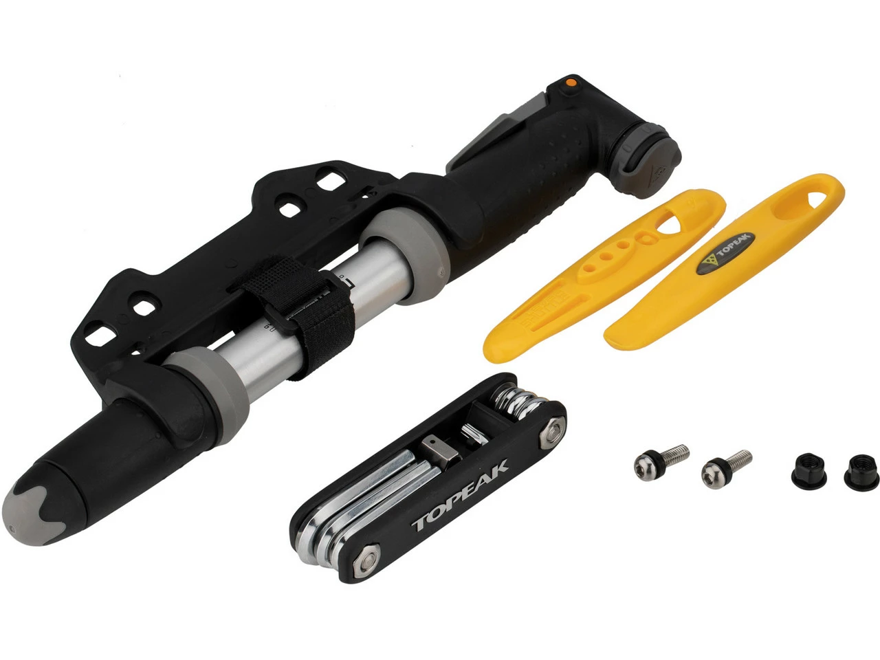 1 x Minipumpe Topeak Mini Dual1 x Multitool Topeak X-Tool+1 Paar Reifenheber Topeak Shuttle Lever 1.1Direkt mitbestellen:Flickzeug-Kit FlyPaper