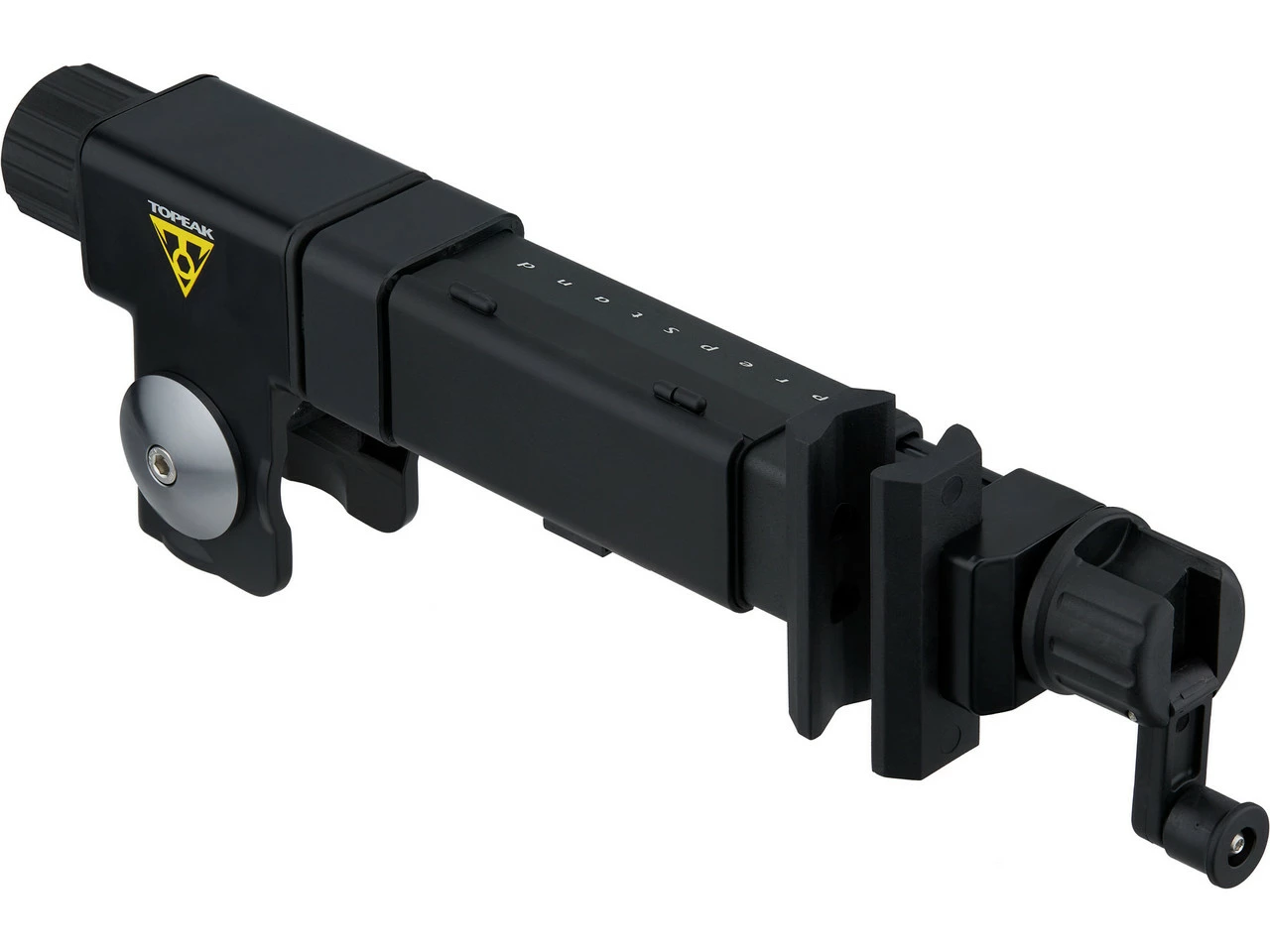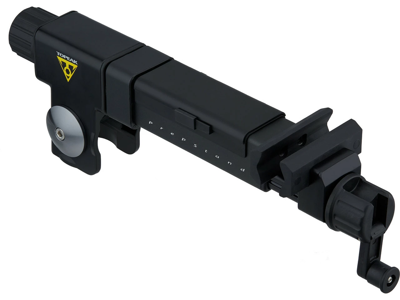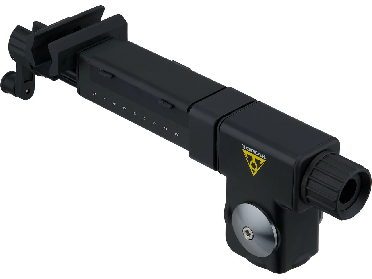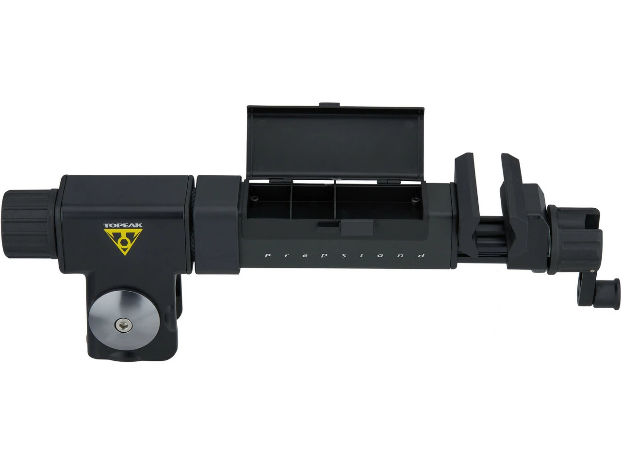 Der Haltearm von Topeak für die PrepStand Elite und PrepStand Pro Montageständer lässt sich präzise einstellen und stufenlos drehen. In den Arm ist außerdem ein praktisches Werkzeugfach integriert.