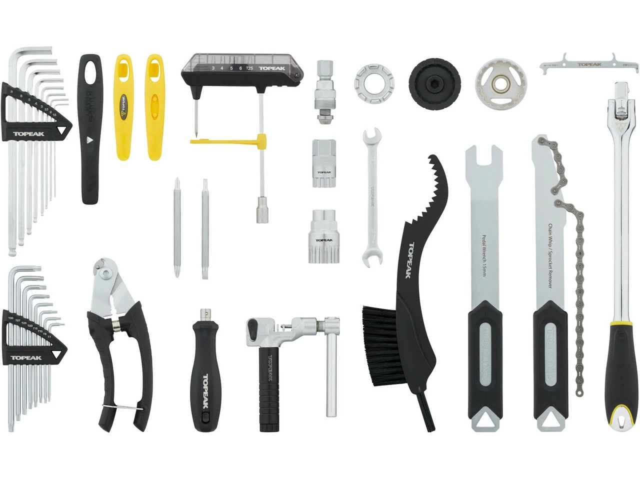 Die PrepBox von Topeak ist ein stabiler Werkzeugkoffer voll mit sämtlichem Profiwerkzeug, das man für ein Fahrrad braucht. 36 Teile mit 55 Funktionen warten und reparieren alles, von der Speiche bis zur Kette.