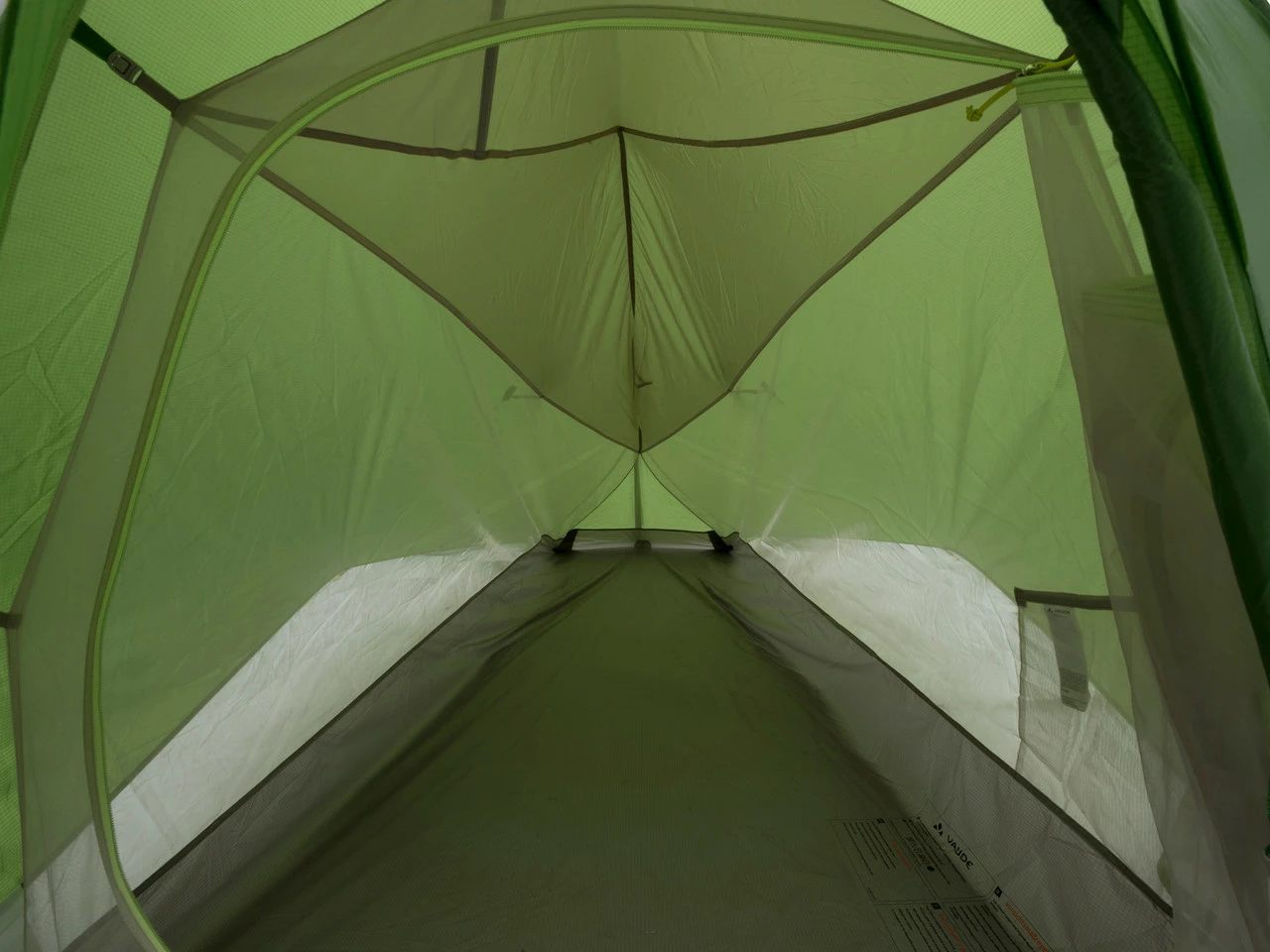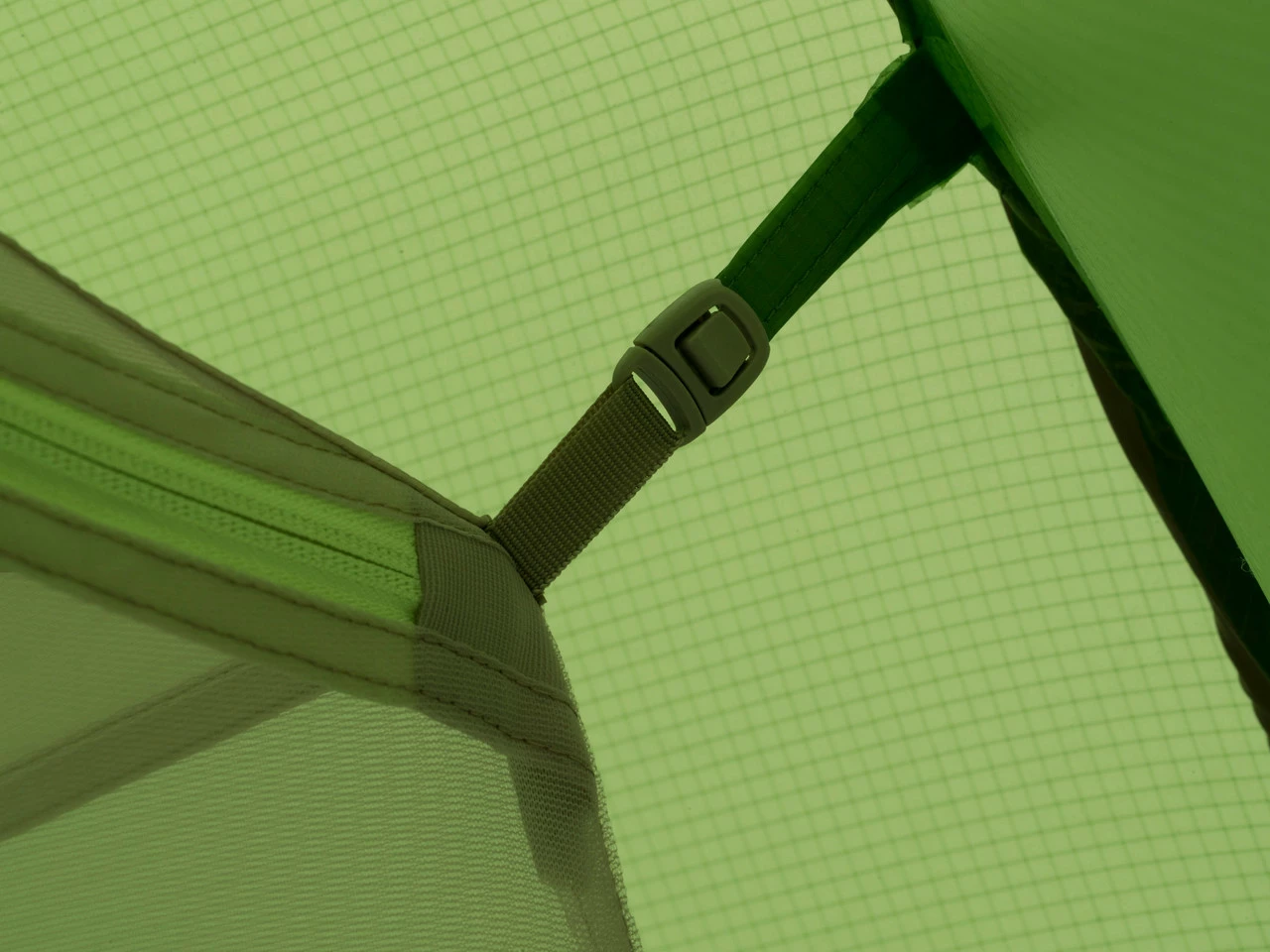 Das Innenzelt besteht aus drei verschiedenen Materialien, die für ein angenehmes Innenklima sorgen. Die Ventilation wird durch ein abdeckbares Moskitonetz geregelt. Ein feines Mesh lässt Wasserdampf entweichen und verhindert das Tropfen von Kondenswasser. Ripstop-Material erzielt eine hohe Textilspannung, sodass der Platz optimal ausgenutzt wird.