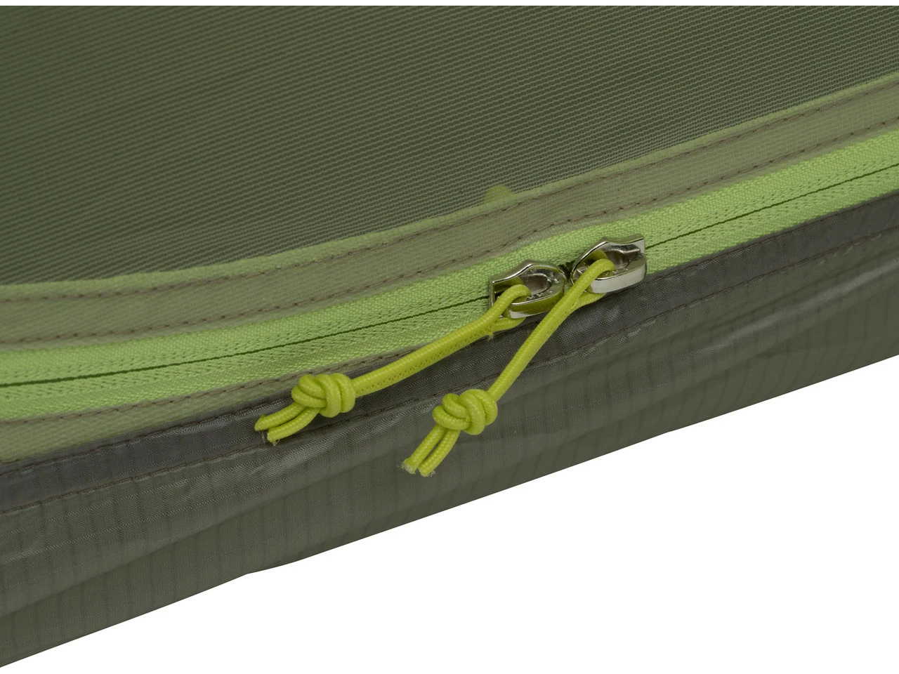 Das Taurus SUL Zelt ist leicht und bietet Platz für eine Person. Mit einem Eingang, der gleichzeitig die Apsis zur Unterbringung von Gepäck bildet, ist es eher minimalistisch gehalten. Dafür ist es äußerst langlebig konstruiert. Das von beiden Seiten dreifach silikonisierte Außenzelt lässt Wasser einfach außen abperlen, zu einer 100-prozentigen Dichtigkeit tragen auch die getapten Nähte bei. Das Innenzelt hängst Du einfach ein, wodurch Du den Innenraum auch bei Regen trocken hältst. Mit den Gestängetaschen bringst Du das Taurus ganz von selbst auf Spannung. Das ist besonders praktisch, wenn Du alleine unterwegs bist und Dir niemand beim Zeltaufbau helfen kann. Neben der Belüftungshaube im Außenzelt ist auch das Innenzelt mit Belüftungsmöglichkeiten in Form von moskitosicherem Netzmaterial ausgestattet. Feines Mesh lässt Wasserdampf austreten und verhindert, dass Kondenswasser von der Zeltwand tropft.