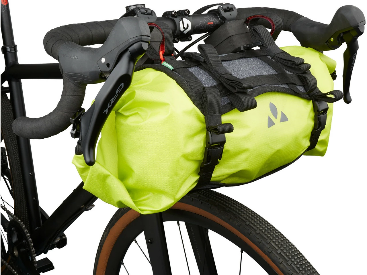 Spezifikationen:Einsatzbereich:GravelAusführung:LenkertascheBefestigung:Power-StrapMaterial:400D Polyurethan, Econyl®Maße (HxBxT):16 cm x 50 cm x 12 cmVolumen:12,5 LiterFeatures:Lenkertasche zum Bikepacking bestehend aus Taschenhalterung mit herausnehmbarem PacksackAnbringung mit Power-Strapwasserdichte Umhängetasche mit RollverschlussPVC-freiverschweißte Nähtemit Polyamid (Econyl) aus recycelten FischernetzenGreen-Shape-Label und Grüner-Knopf-Siegel für umweltfreundlich und fair hergestellte Produkte